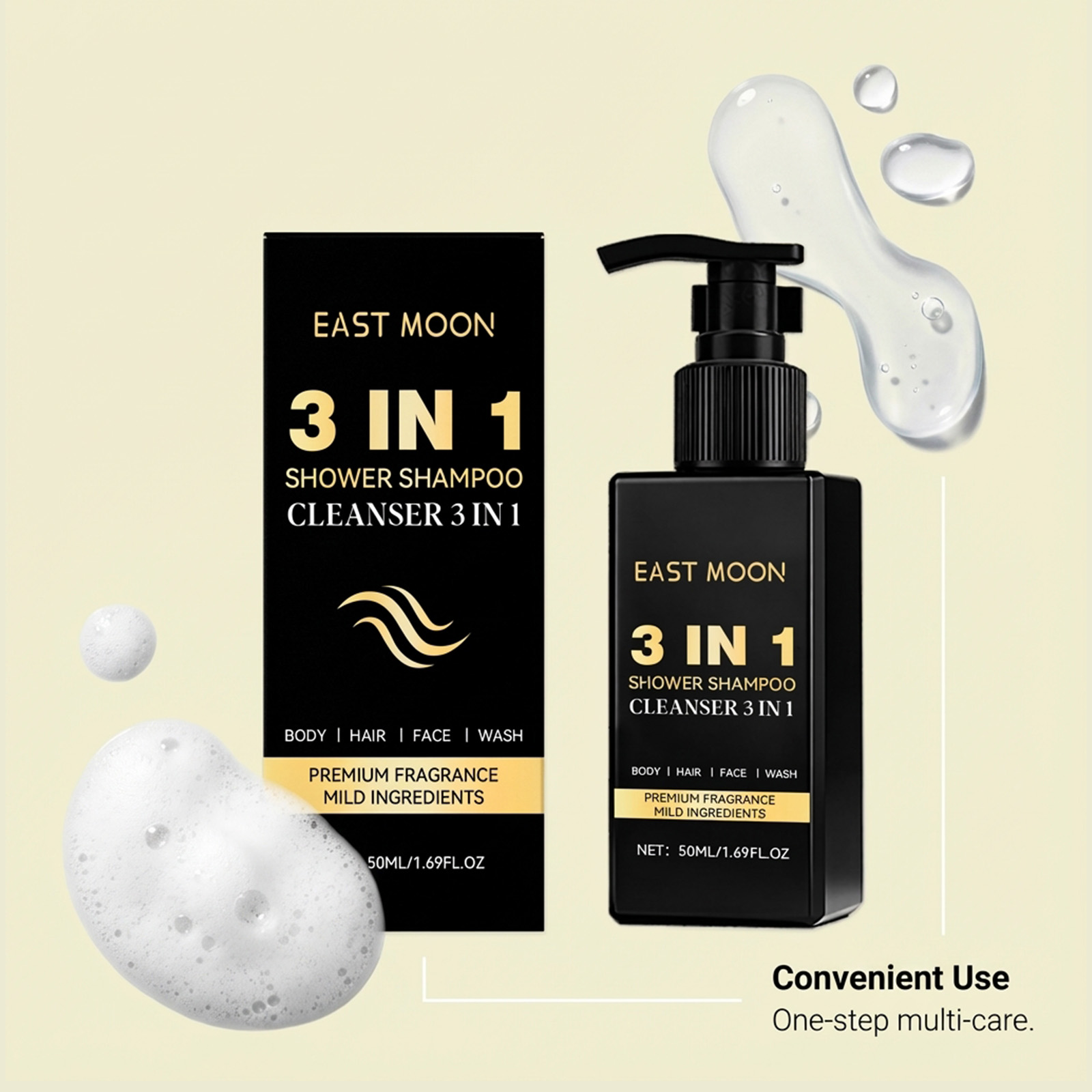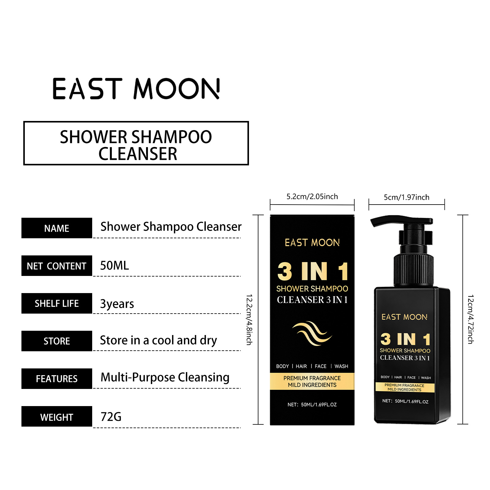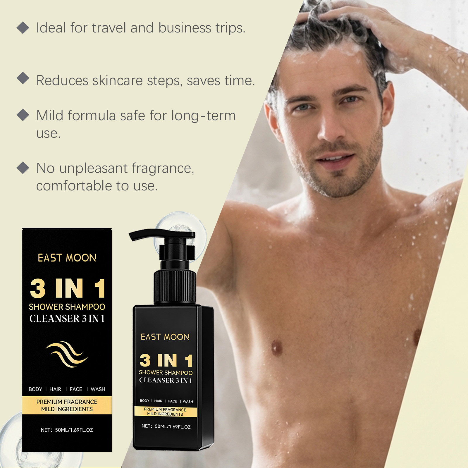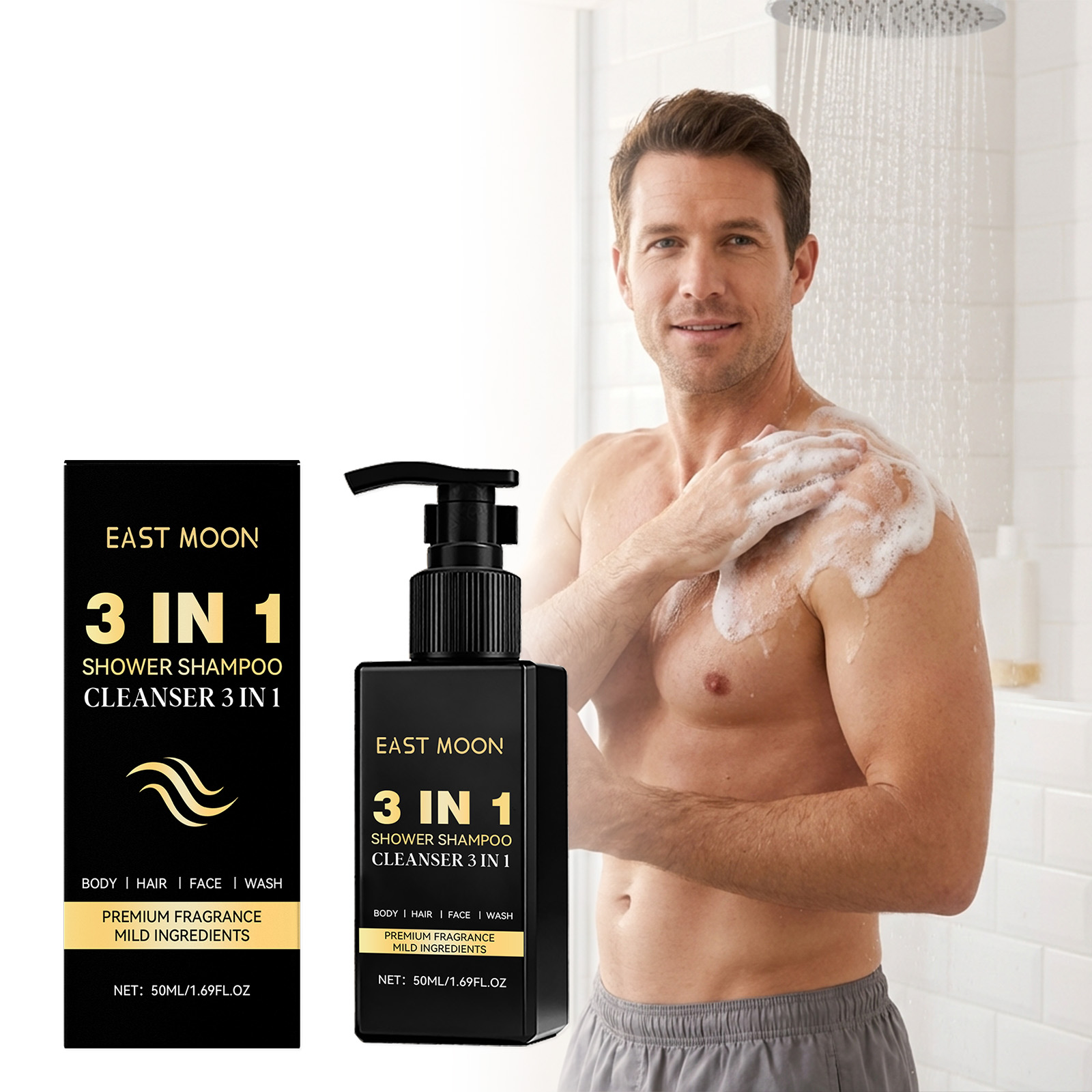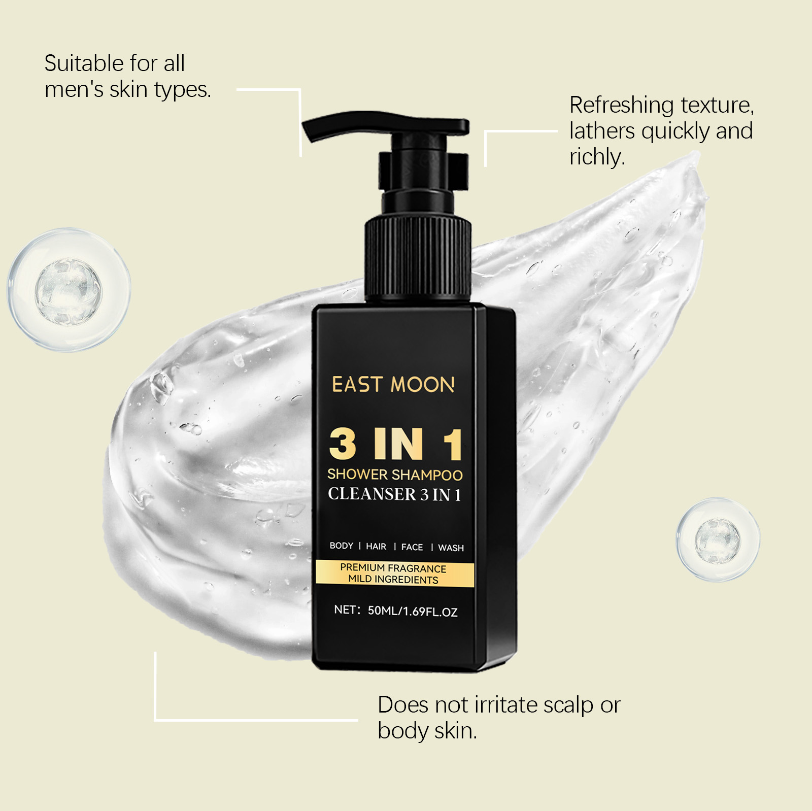East Moon Men's Three-In-One Facial Cleanser Gently Cleanses The Face, Hair And Body, And Moisturizes And Cleanses