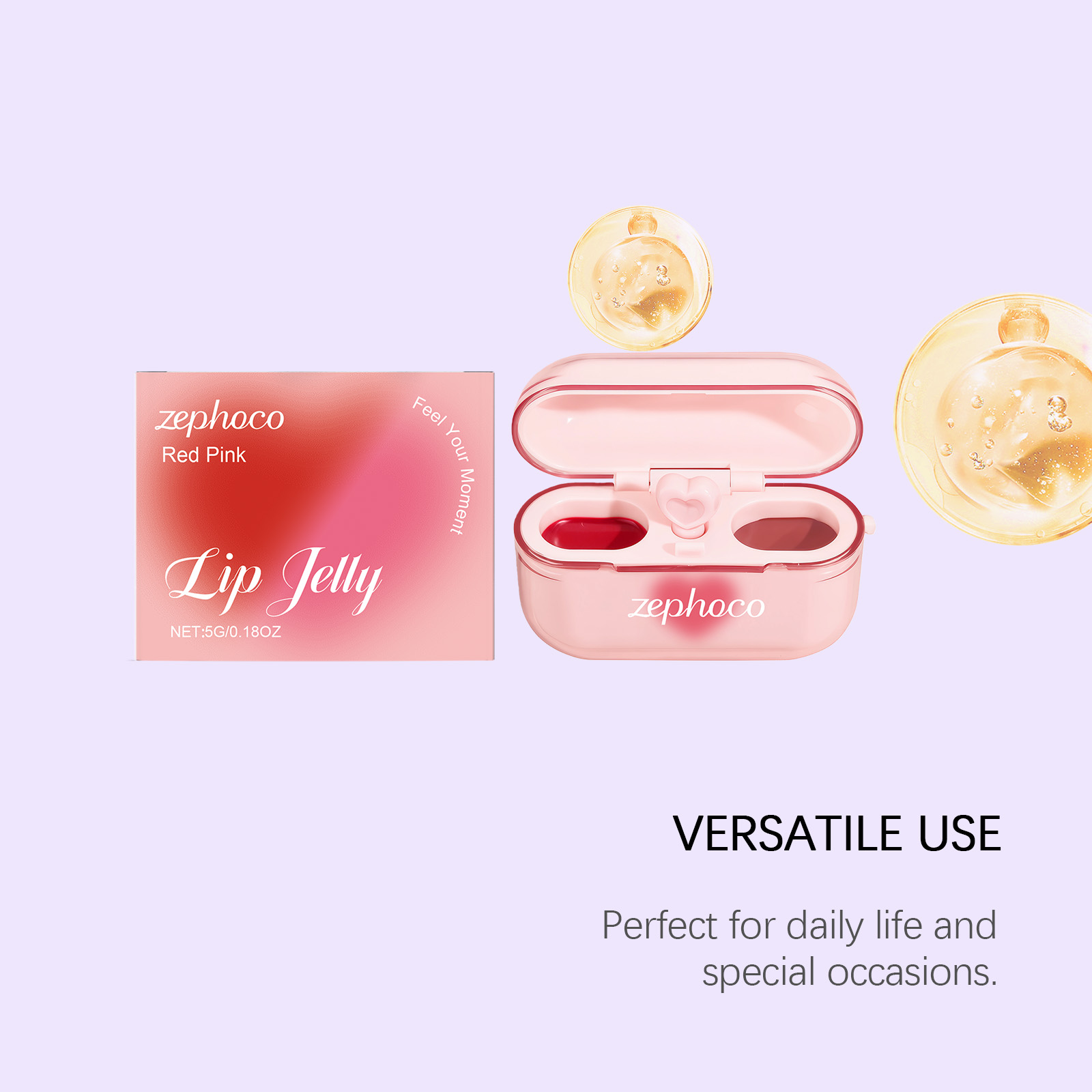 zephoco Dual-Color Jelly Lip Gloss Is Lustrous, Delicate, Light, Natural And Smooth, Making It A Versatile Lip Makeup Choice For Daily Use