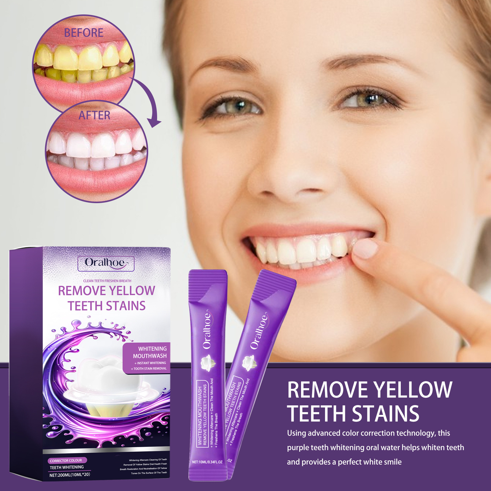 Oralhoe Remove Yellow Teeth Stains, Teeth Cleaning Yellow Teeth Stains Whitening Fresh Breath Oral Care
