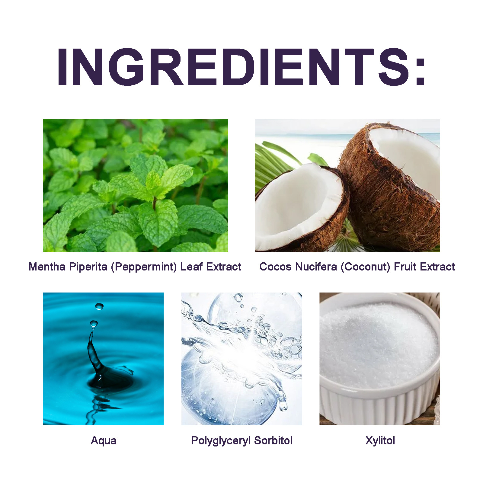 | 成分 | 椰子提取物、聚甘油山梨醇、薄荷提取物 |