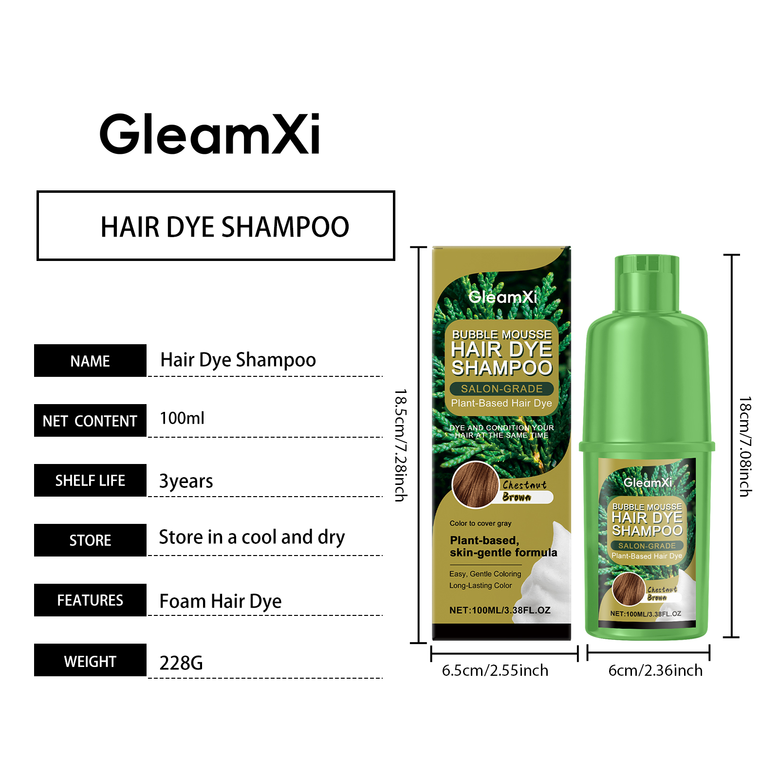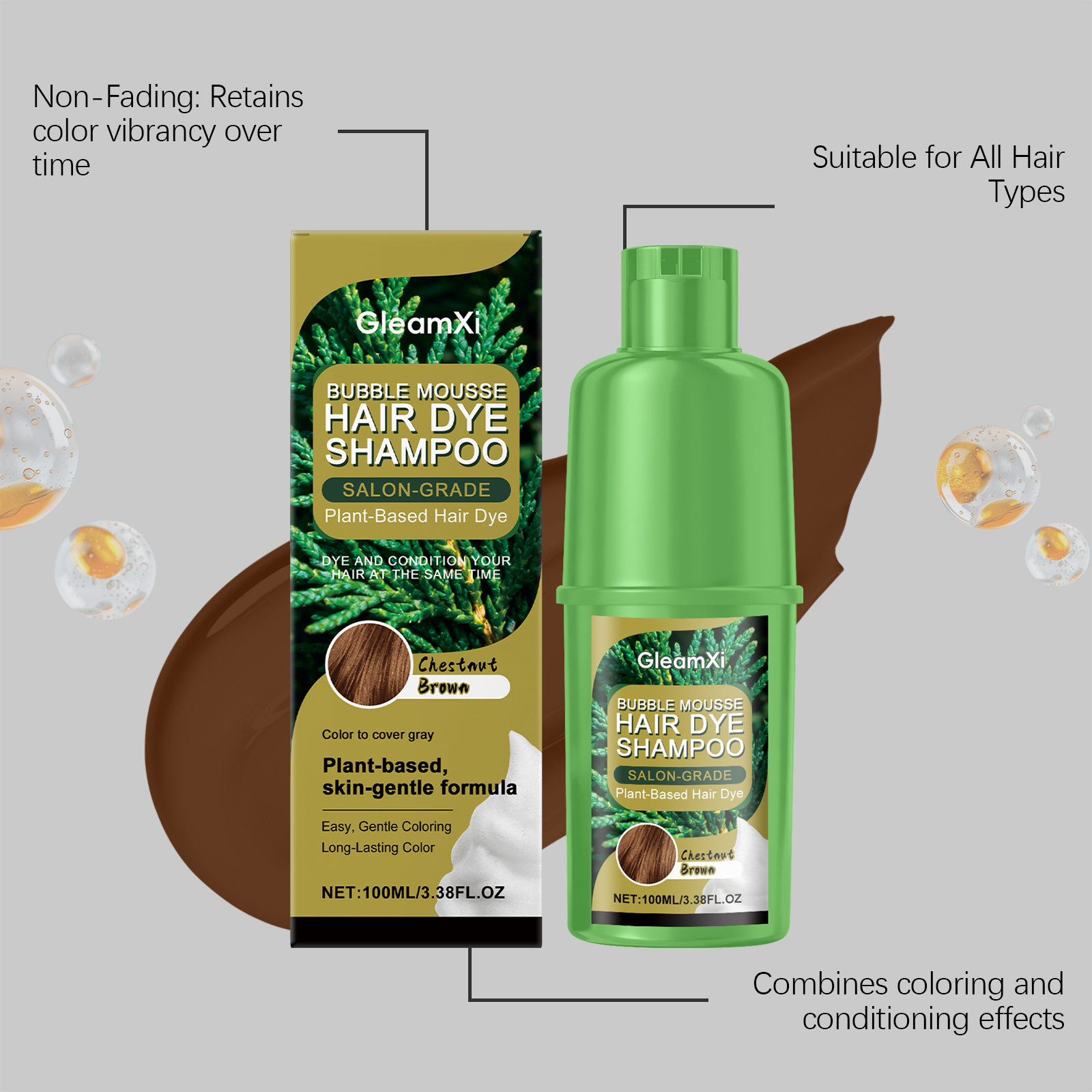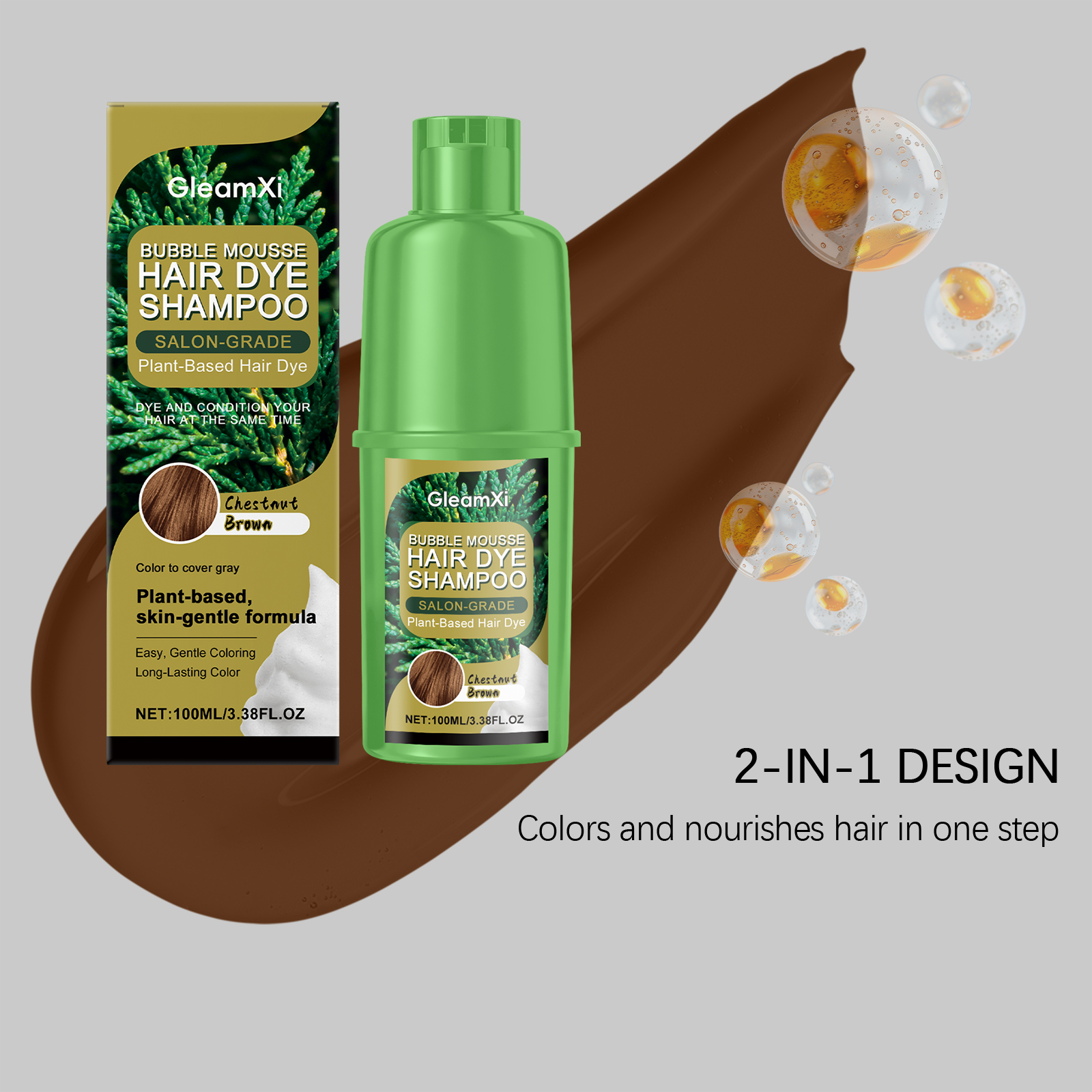 GleamXi Chestnut Plant Bubble Dye, With Gentle Plant Ingredients, Is Natural, Convenient, Easy To Apply And Does No Harm To Hair