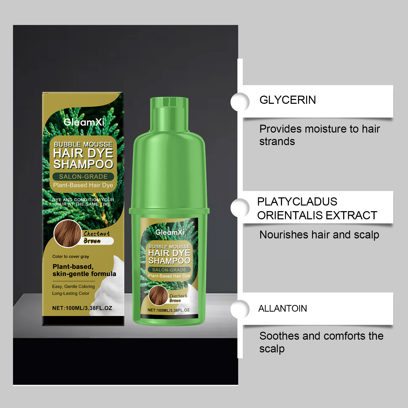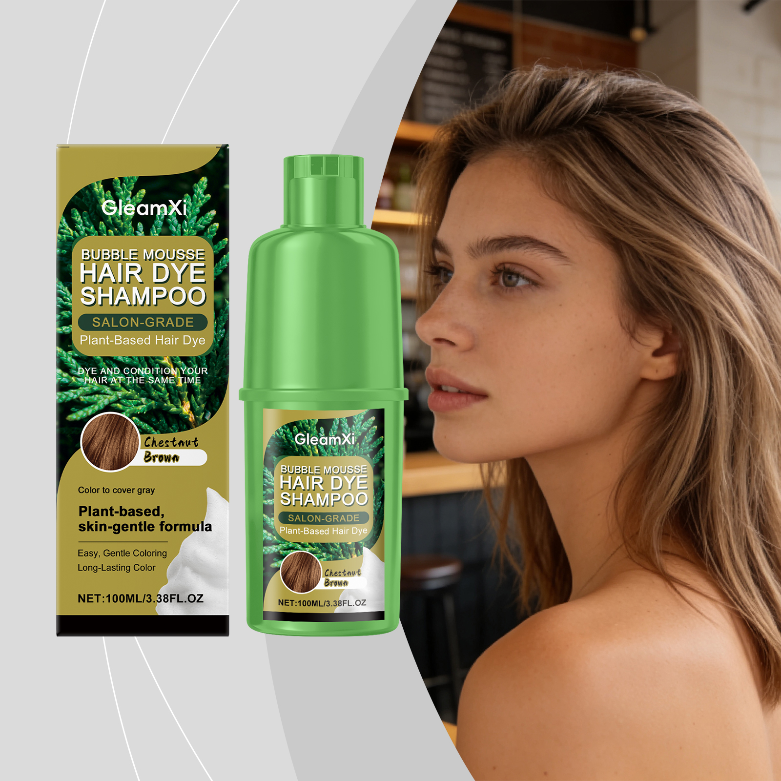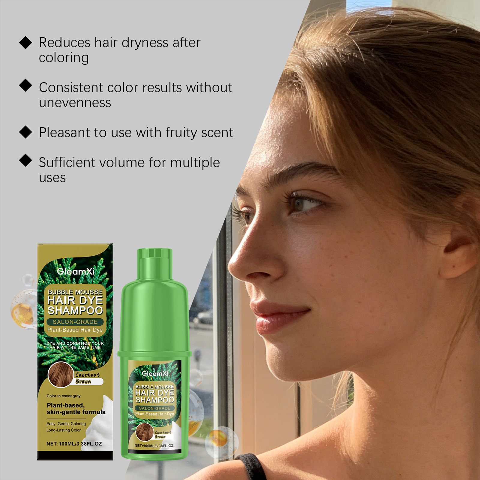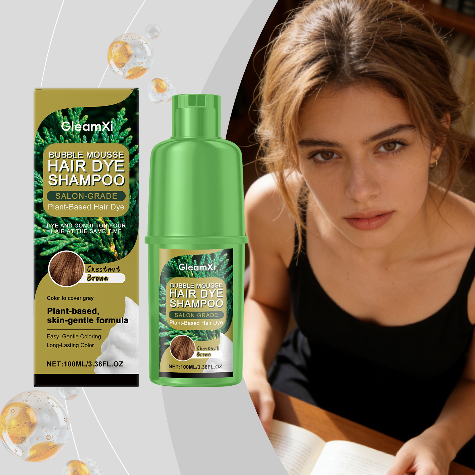 GleamXi Chestnut Plant Bubble Dye, With Gentle Plant Ingredients, Is Natural, Convenient, Easy To Apply And Does No Harm To Hair