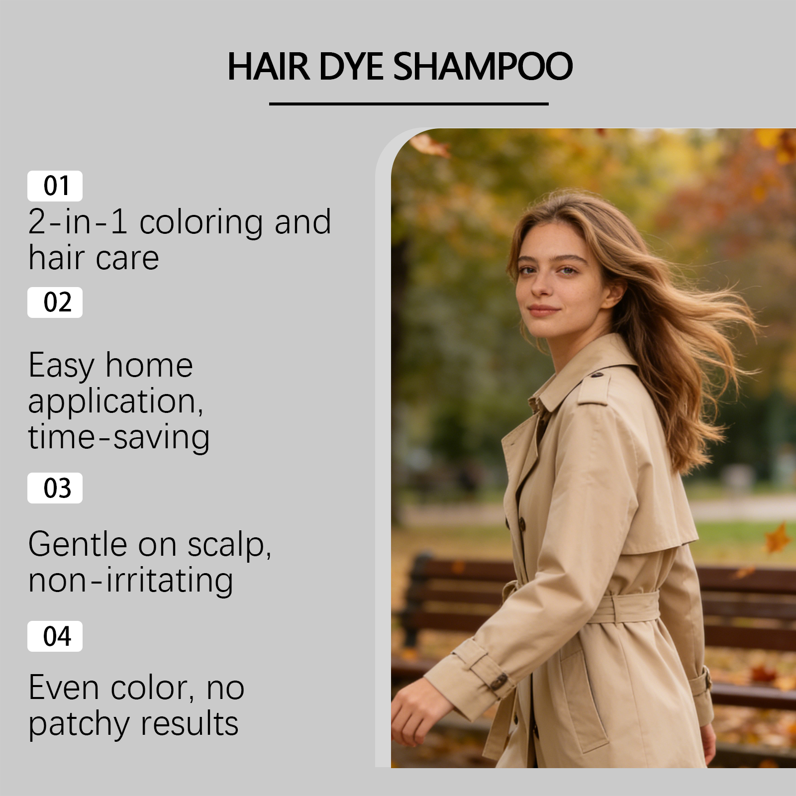 我们的栗色植物泡泡染,由C12-18烷基葡糖苷、甘油精心调配而成。专为保持鲜艳的色泽,让头发柔软不卷曲设计。使用方法极为便捷:【染发前测试】使用前请务必进行皮肤敏感性测试。如果出现发红、肿胀、瘙痒或烧灼感等症状,请立即停止使用并洗掉残留的产品。【指示】1. 使用前确保头发干燥。2、操作时穿戴好防护用品,在面部、颈部、耳后、手臂等可能接触皮肤的部位涂抹面霜。3.将染发剂均匀涂抹在头发上,确保覆盖每一根发丝,等待30分钟让染料完全渗透头发。4. 用温水彻底冲洗头发,直至水流清澈。并且它可以精确均匀地隐藏白发。