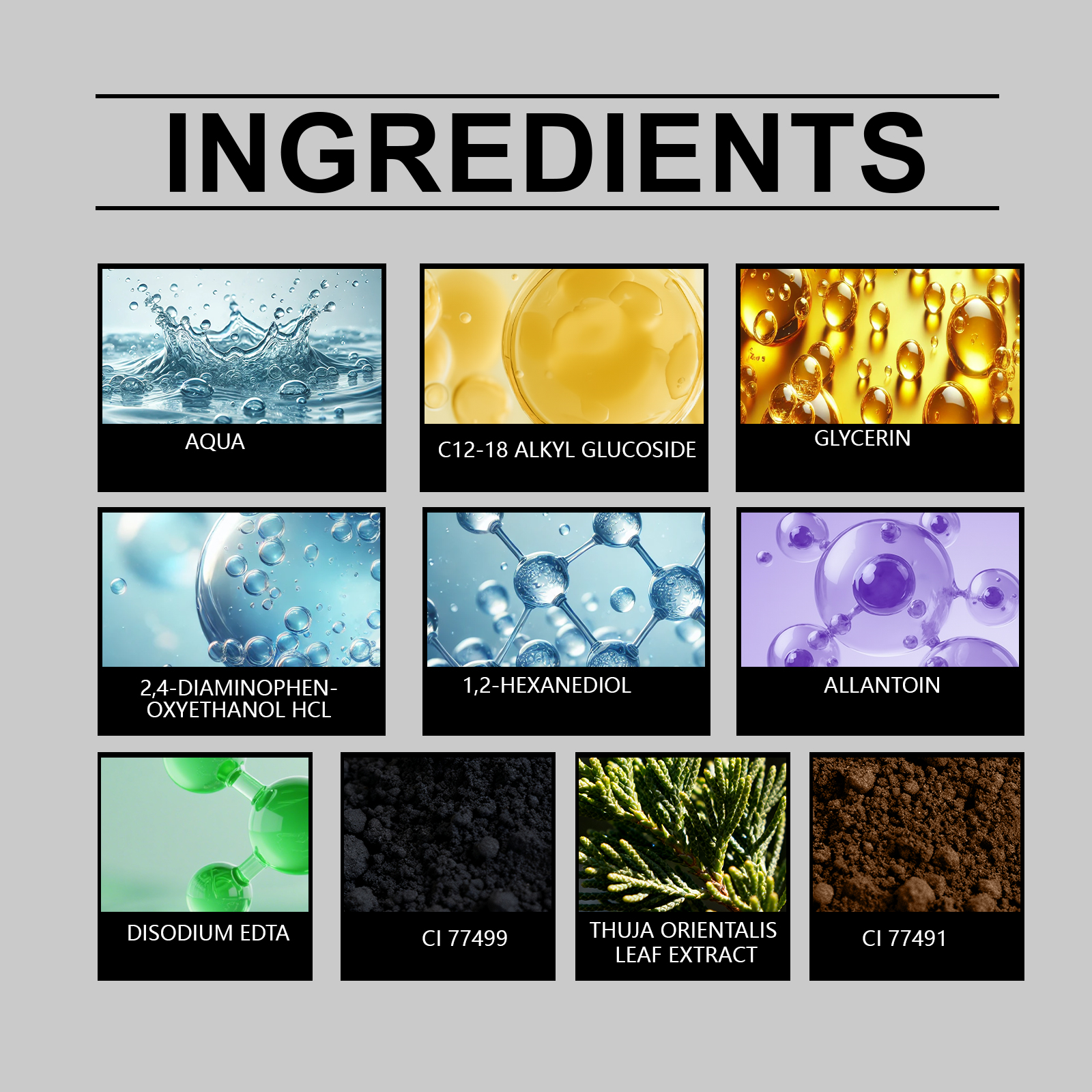 我们的深棕色植物泡泡美发剂,由C12-18烷基葡糖苷、甘油精心调配而成。专为保持鲜艳的色泽,让头发柔软不卷曲设计。使用方法极为便捷:【染发前测试】使用前请务必进行皮肤敏感性测试。如果出现发红、肿胀、瘙痒或烧灼感等症状,请立即停止使用并洗掉残留的产品。【指示】1. 使用前确保头发干燥。2、操作时穿戴好防护用品,在面部、颈部、耳后、手臂等可能接触皮肤的部位涂抹面霜。3.将染发剂均匀涂抹在头发上,确保覆盖每一根发丝,等待30分钟让染料完全渗透头发。4. 用温水彻底冲洗头发,直至水流清澈。并且它可以精确均匀地隐藏白发。