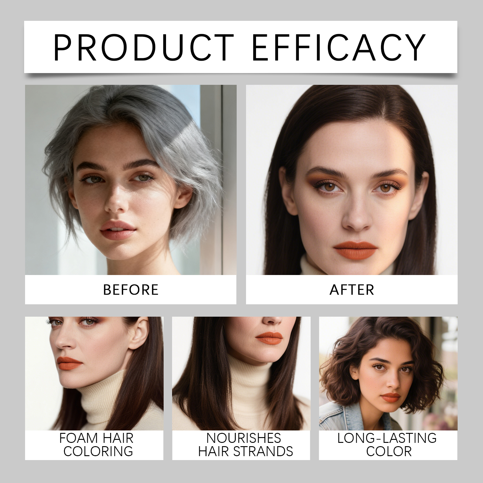 GleamXi Dark Brown Plant-Based Bubble Hair Care Product, With Mild Ingredients, Is Convenient For Daily Use, Fashionable, Natural And Easy To Color