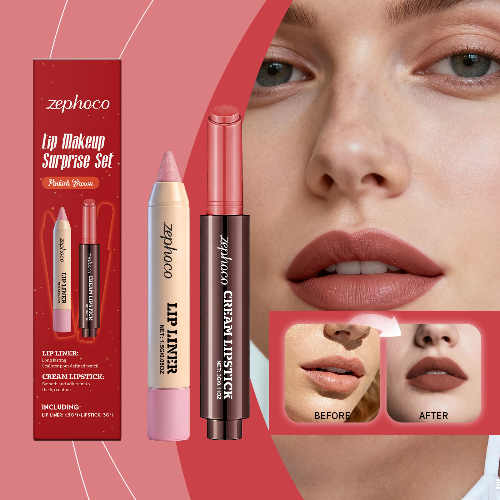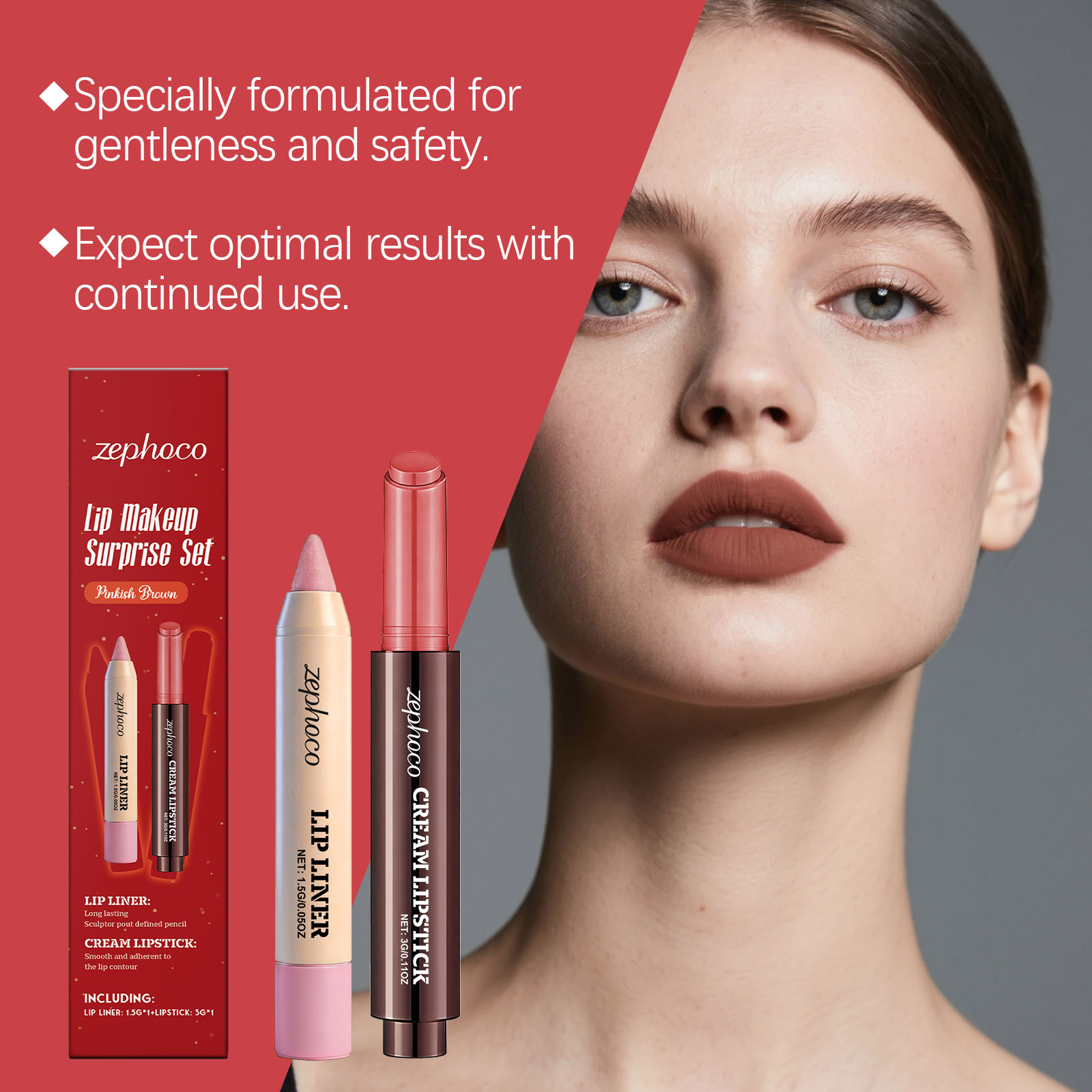 zephoco Lip Makeup Set (Pink, Berry, Red And Brown) Creates A Smooth And Three-Dimensional Lip Color