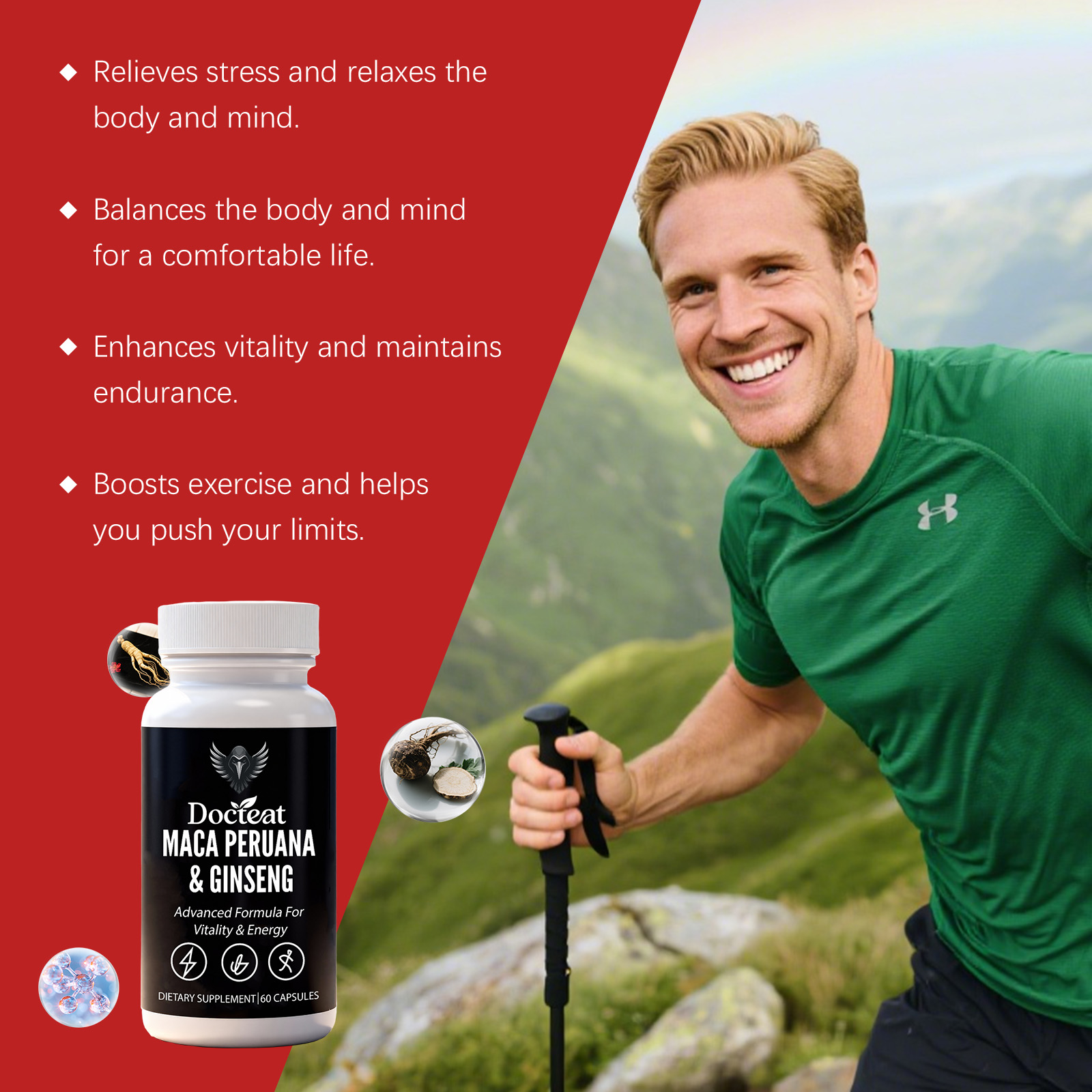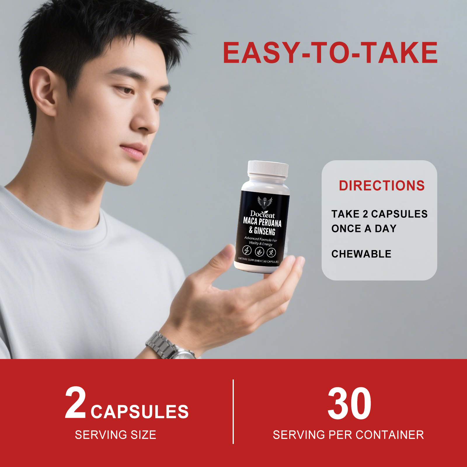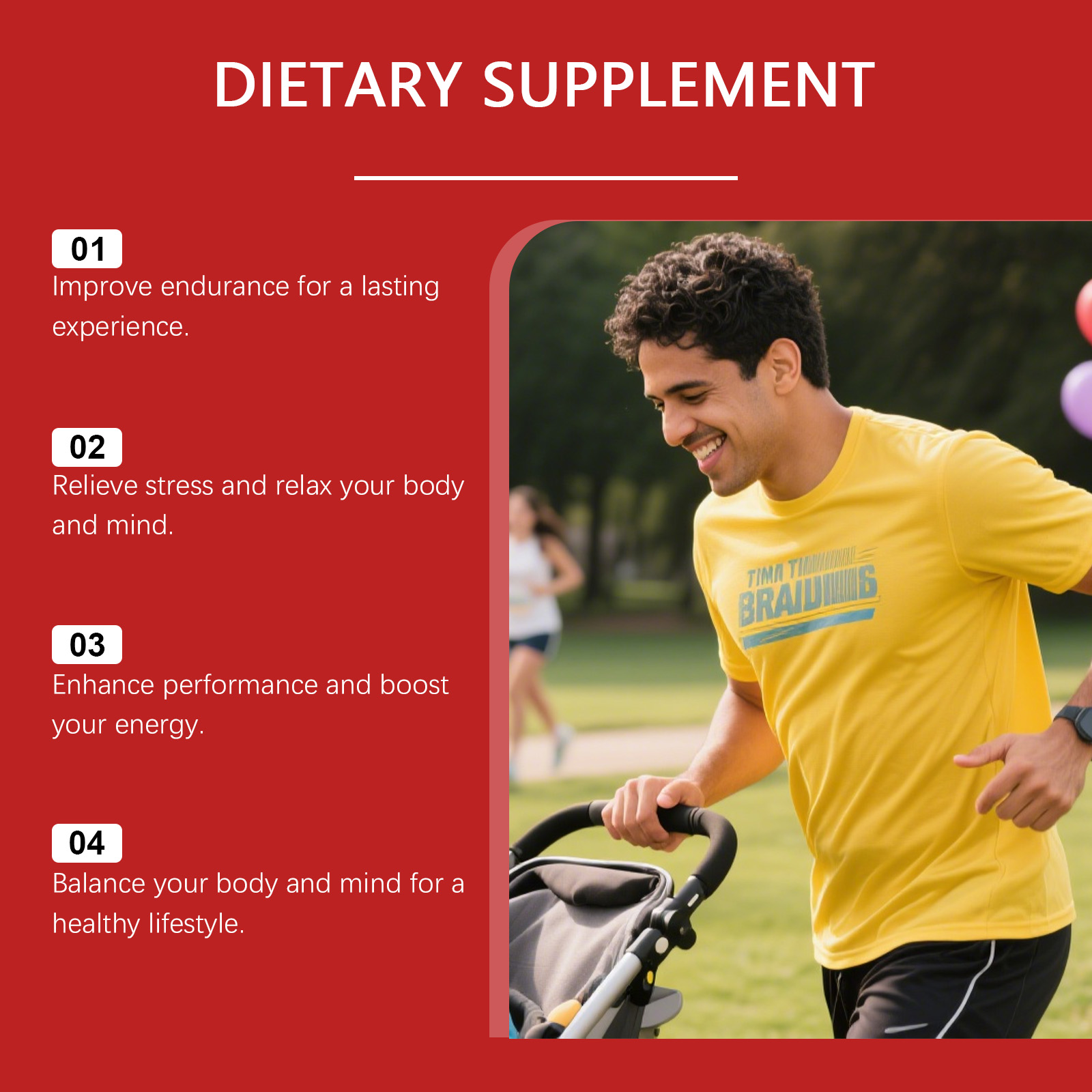 我们的男士护理胶囊,由玛卡根提取物、人参提取物精心调配而成。专为维持持续能量,使运动更轻松,舒缓情绪,放松身心设计。使用方法极为便捷:每天服用2粒胶囊。并且它可以释放你的潜能,发挥最佳表现,享受充满活力的时刻,持久耐力。
