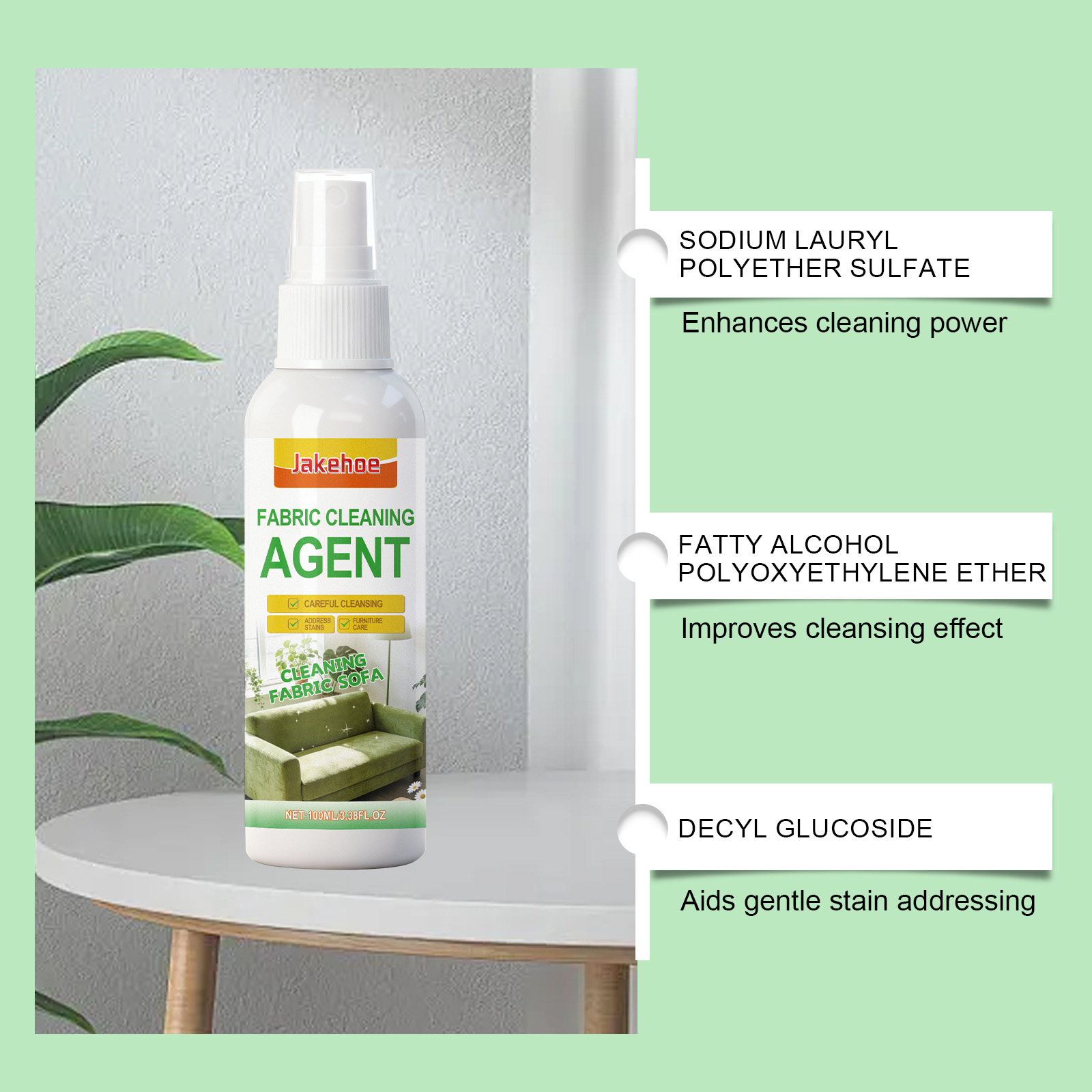 我们的布艺沙发干洗剂,由癸基葡糖苷, 1,2-己二醇精心调配而成。专为护理织物沙发设计。使用方法极为便捷:1.将适量清洁剂涂抹在海绵上,然后轻轻擦拭织物沙发上的污渍。2.擦拭污渍后,用毛巾轻拍处理区域,以吸干多余清洁剂。3.让沙发的处理区域自然风干。并且可以处理织物污渍。