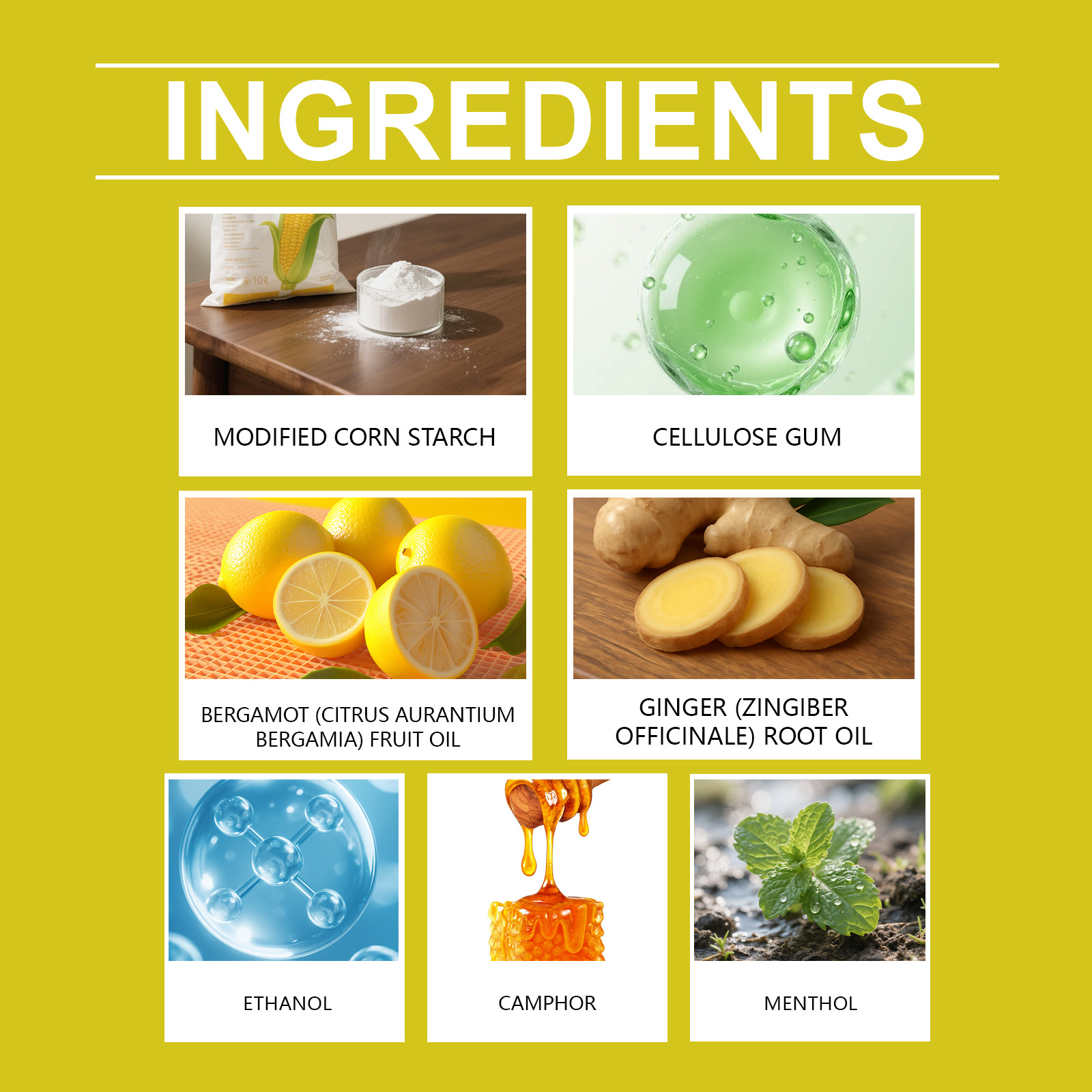 | 成分 | 香柠檬果油、姜根油 |