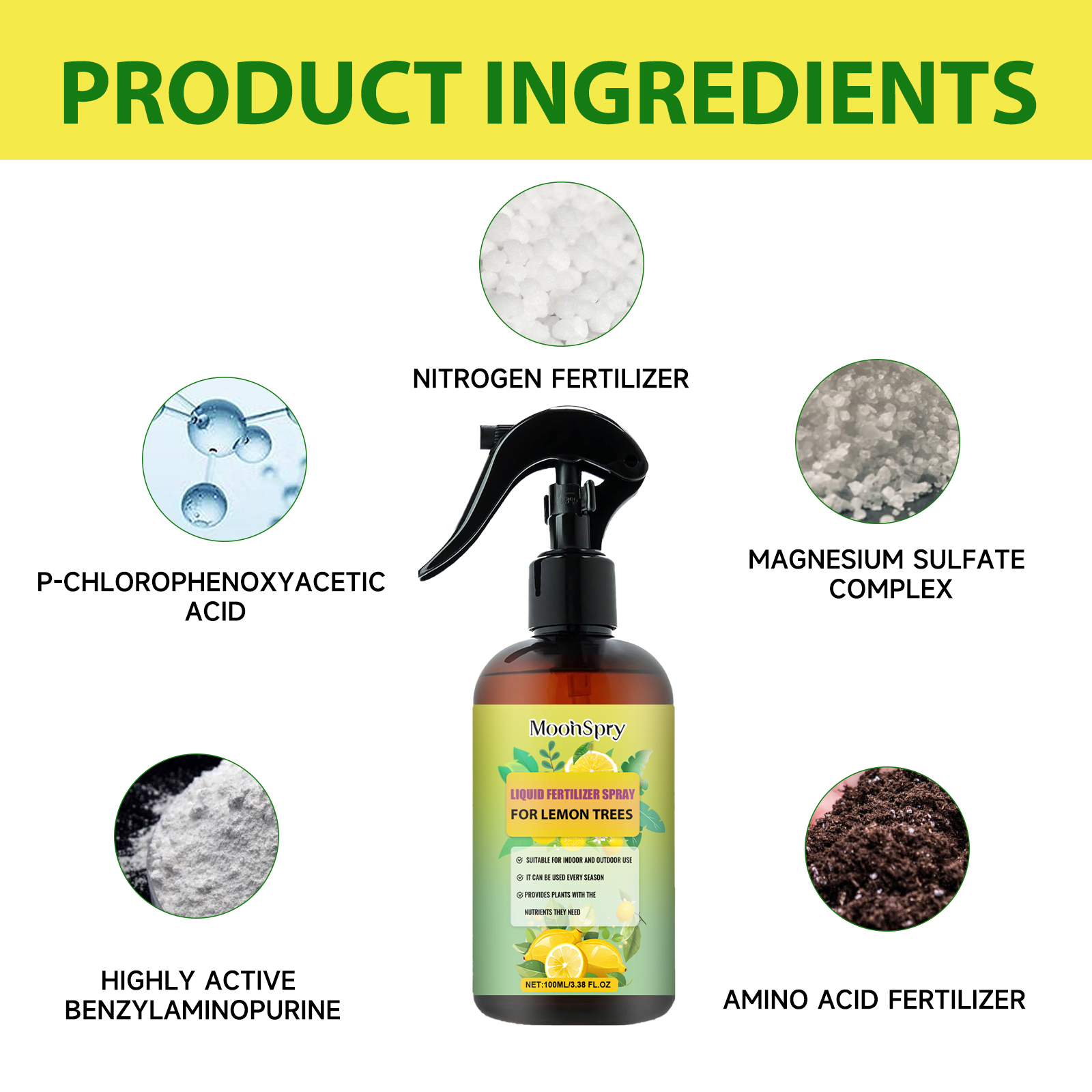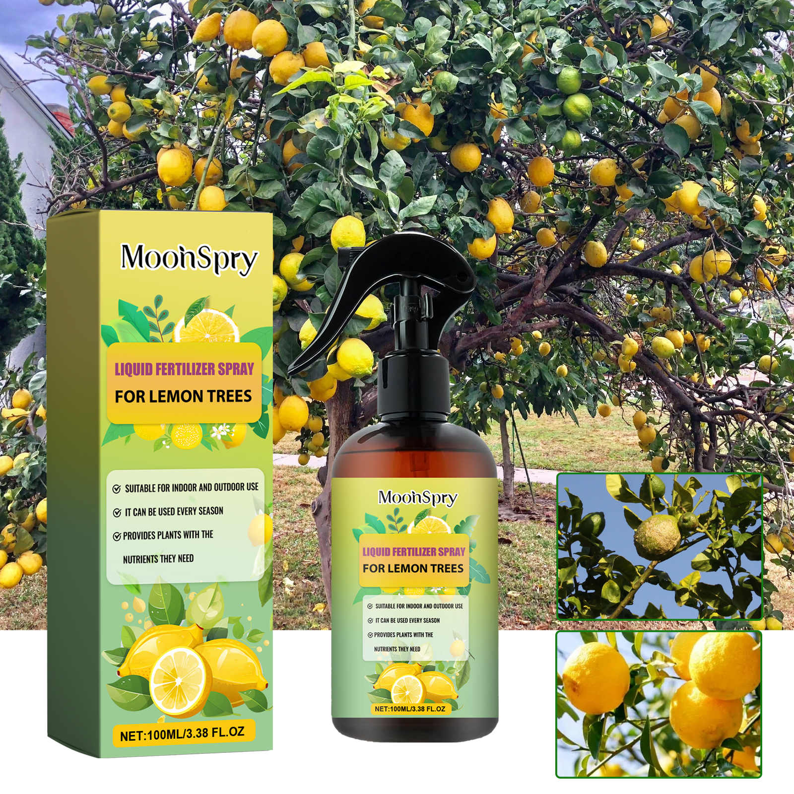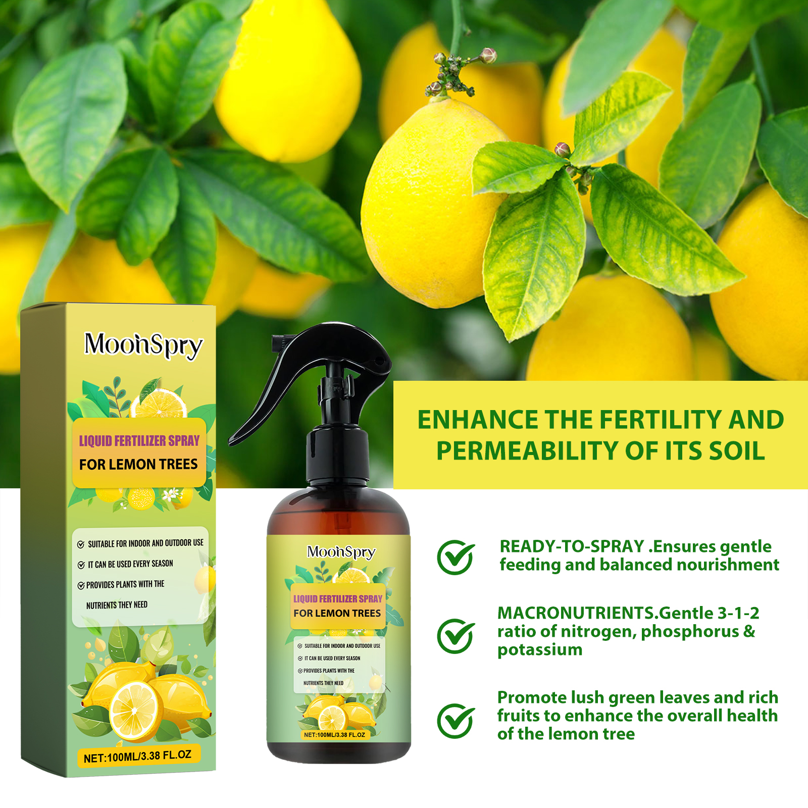 MoonSpry Premium Liquid Fertilizer Spray For Lemon Trees, Lemon Tree Root Promotion Green Leaf Concentrate Nutrient Fertilizer Spray
