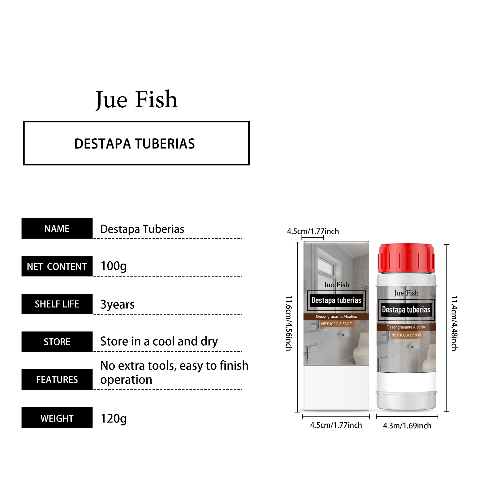 Jue Fish Pipe Unblocking Agent, Kitchen And Bathroom Drain Clogging Cleaning, Odor Unblocking And Dissolving Agent