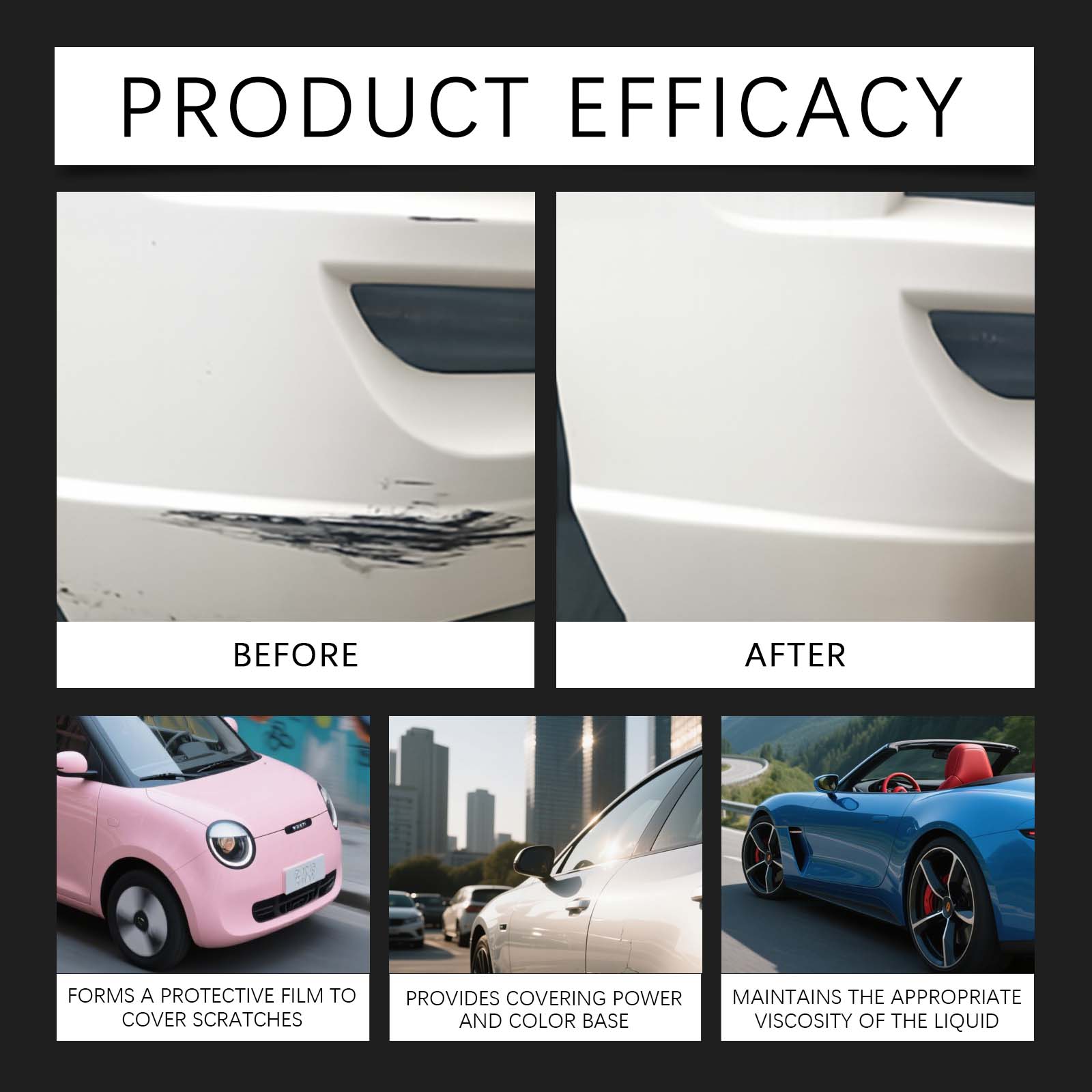 我们的汽车划痕护理膏,由羧甲基纤维素 、1,2-己二醇精心调配而成。专为快速处理轻微划痕设计。使用方法极为便捷:1. 将有划痕的部位清洁并擦干。2. 用您自己的海绵取适量本产品,然后在划痕处来回擦拭,直至划痕被消除。3. 最后,将残留物擦干净。并且非专业人士也能轻松操作。