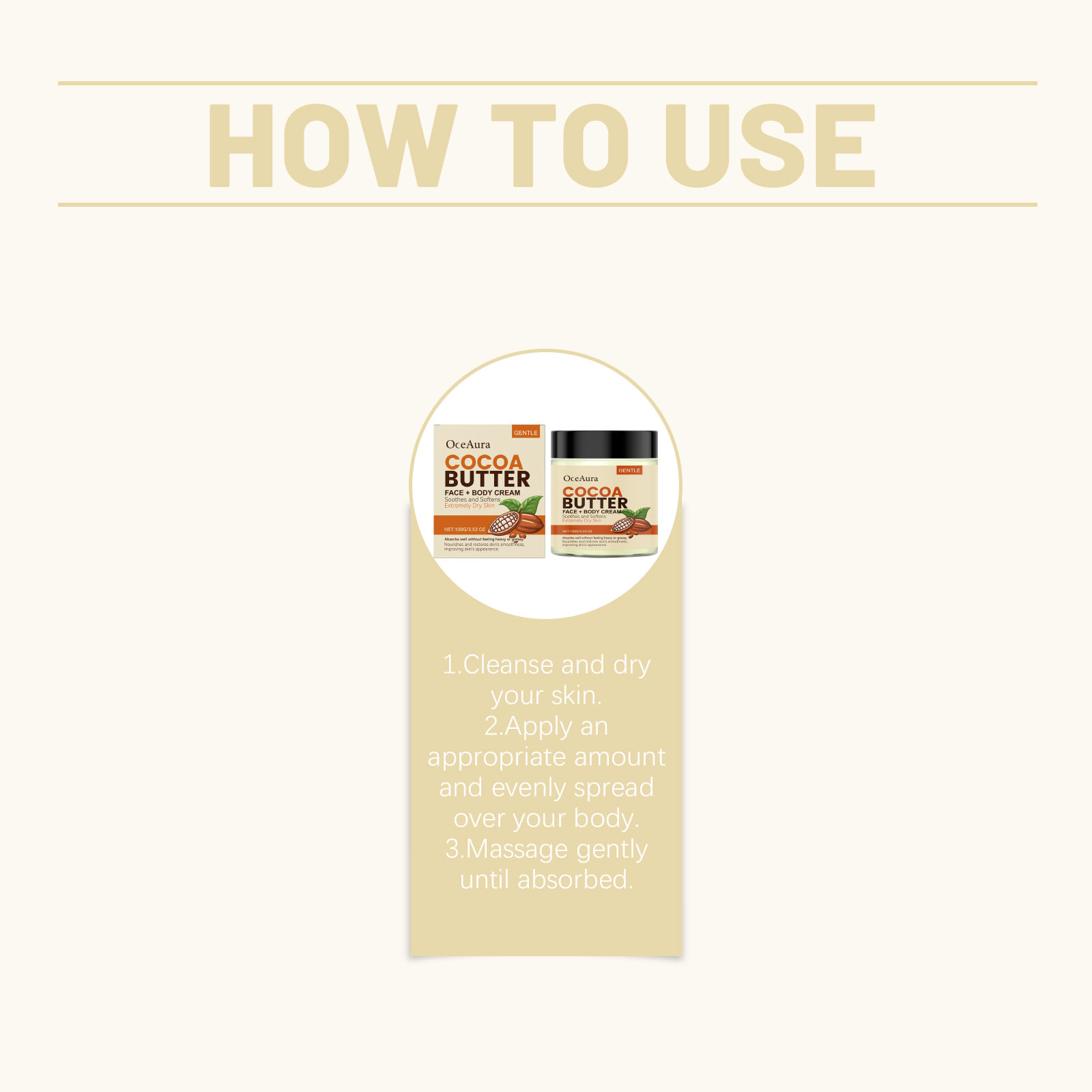 我们的保湿润肤霜,由精氨酸、可可籽脂精心调配而成。专为缓解轻微皮肤不适设计。使用方法极为便捷:1.清洁并擦干皮肤。2.取适量均匀涂抹于全身。3.轻柔按摩至吸收。并且可以长时间保持水分。