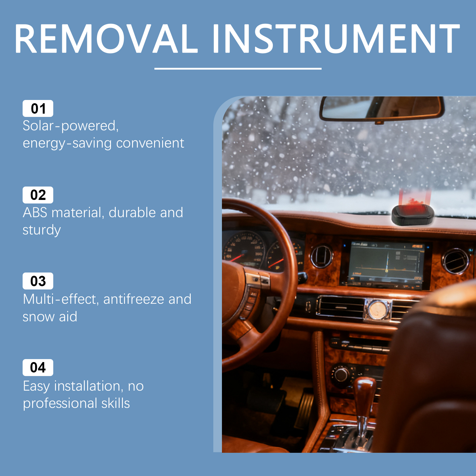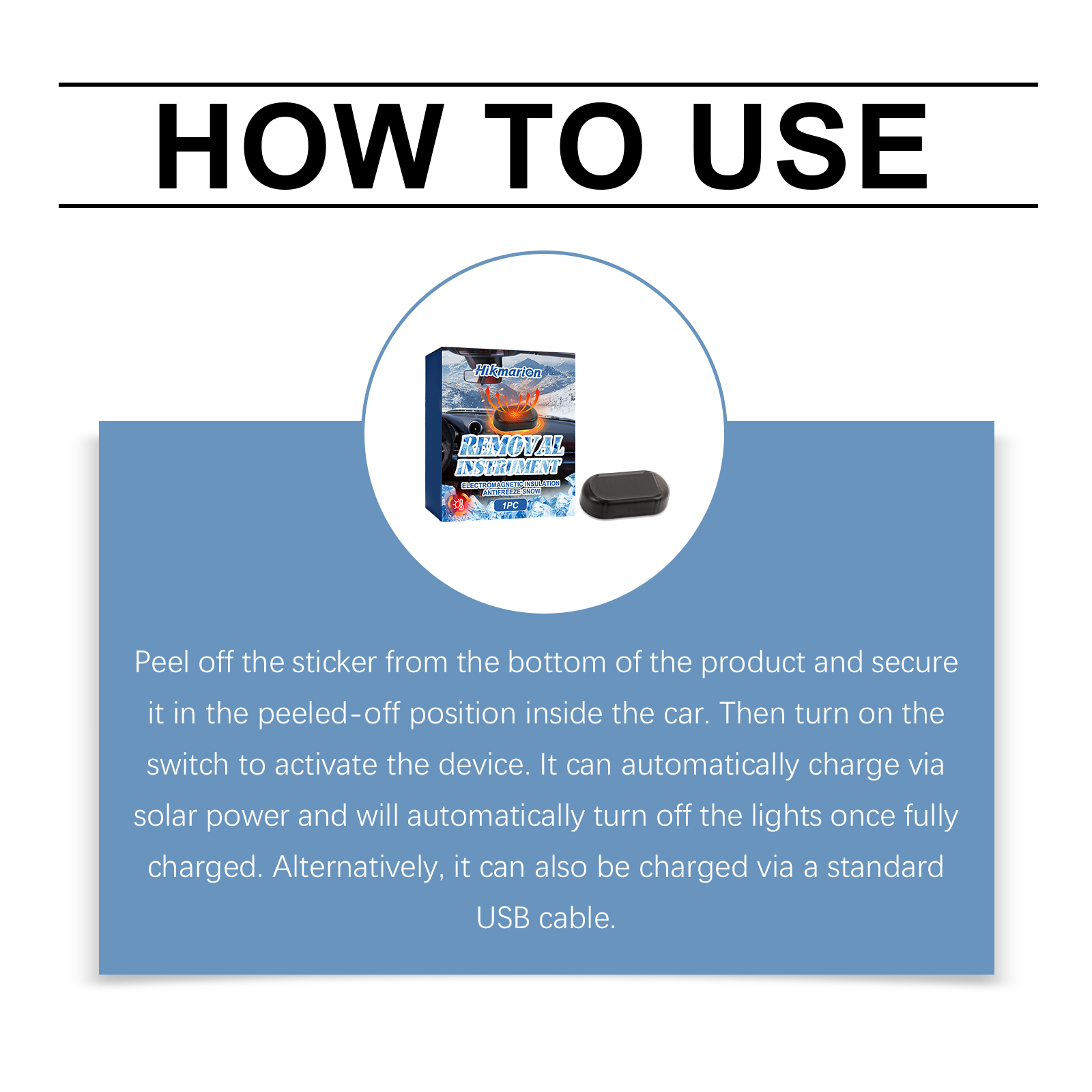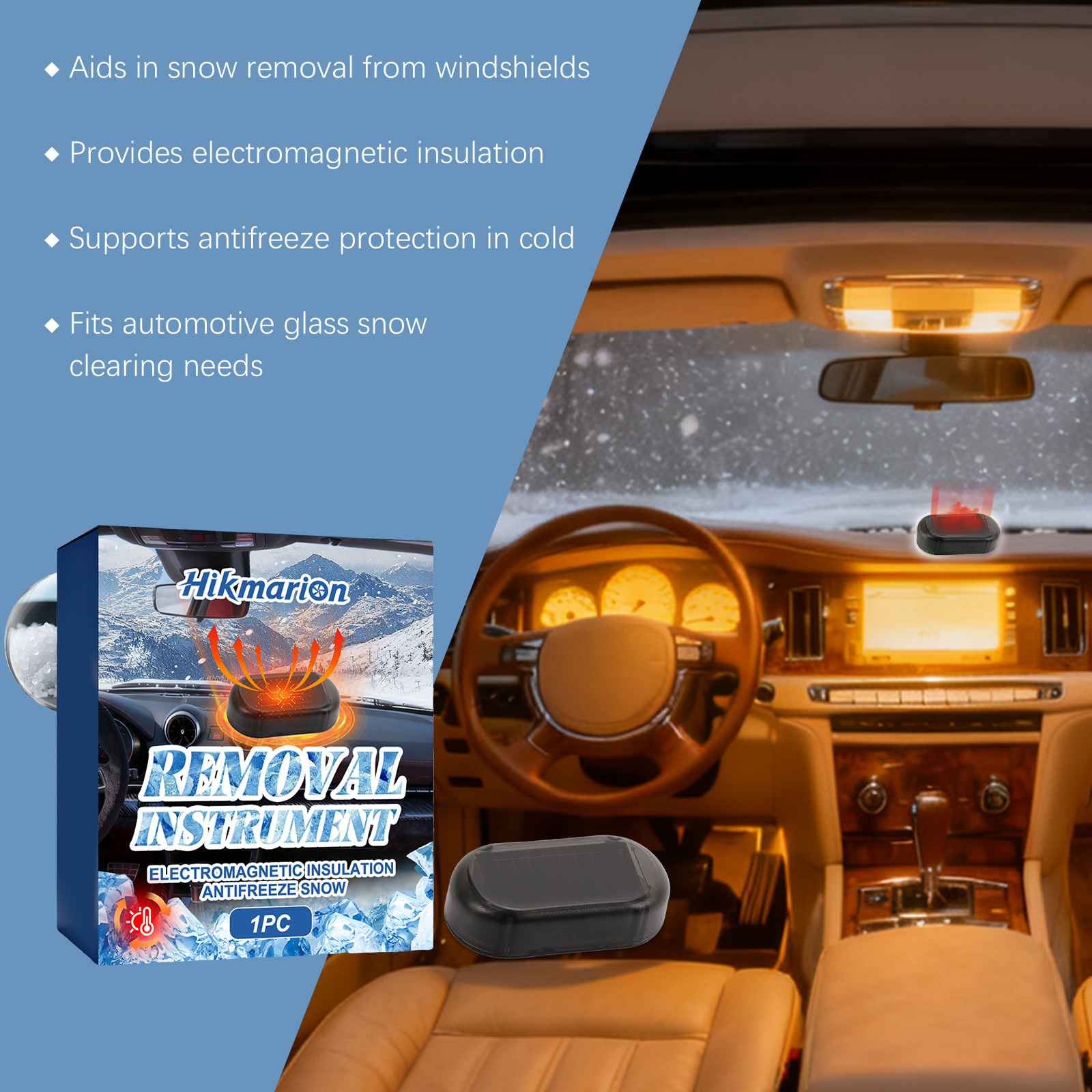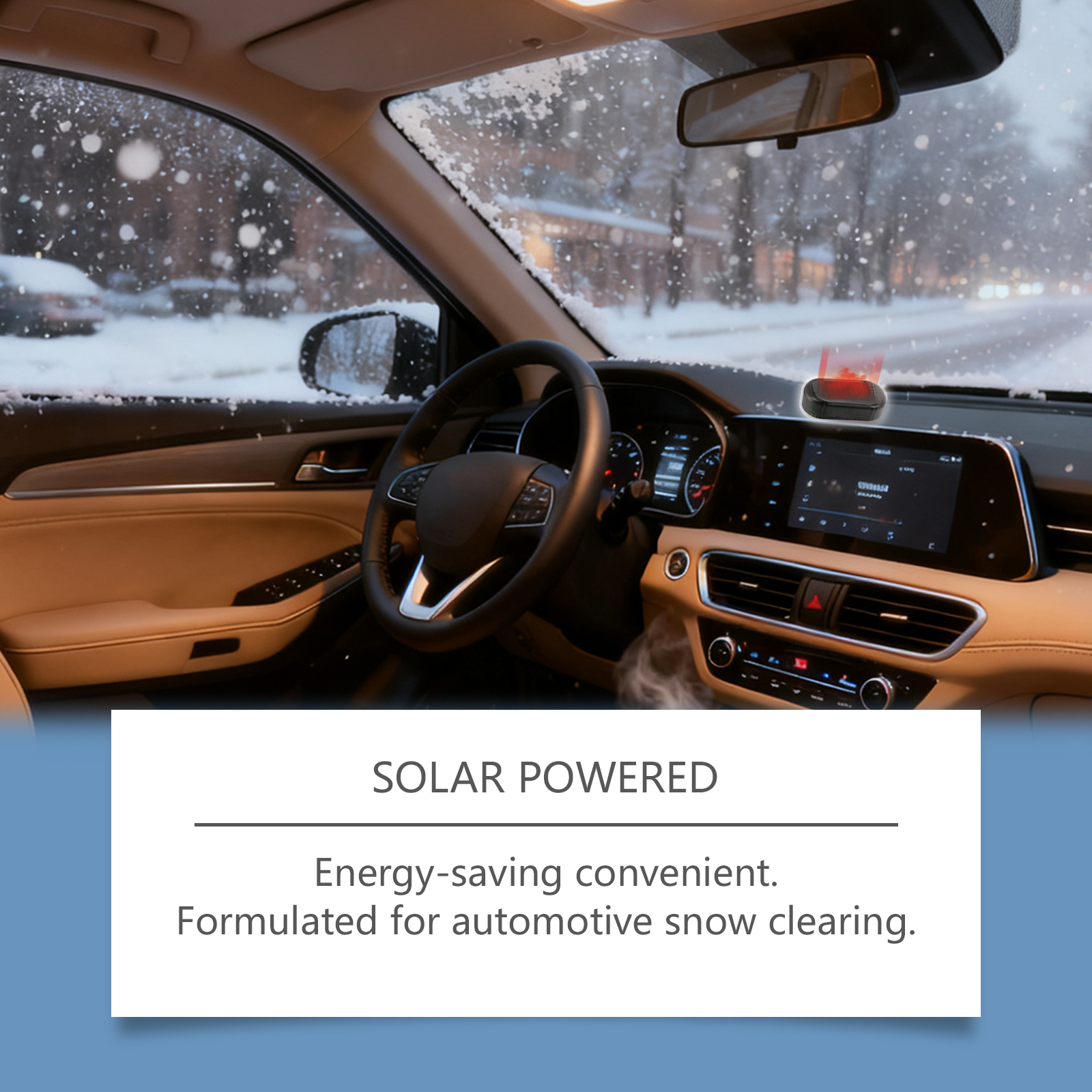 Hikmarion Solar Anti-Freezing And Snow Removal Device Is A Vehicle-Mounted Configuration For De-Icing And Snow Protection Of Car Windshields In Winter