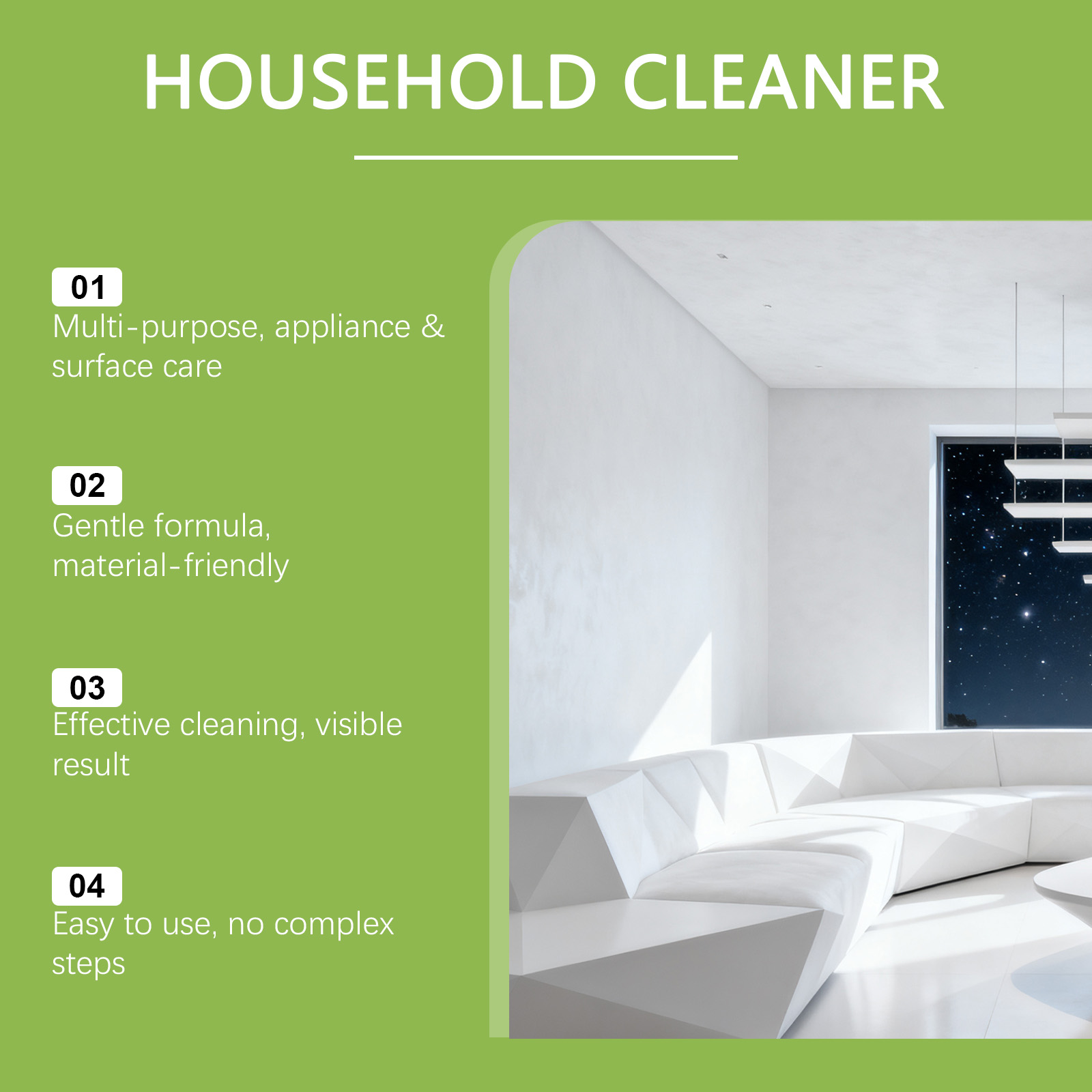 我们的家用清洁剂,由1,2-己二醇,脂肪酶精心调配而成。专为清洁家用设备设计。使用方法极为便捷:1.将适量产品喷洒在需要清洁的表面上。2.等待一段时间,然后用布擦拭干净。并且可以保护表面材料。