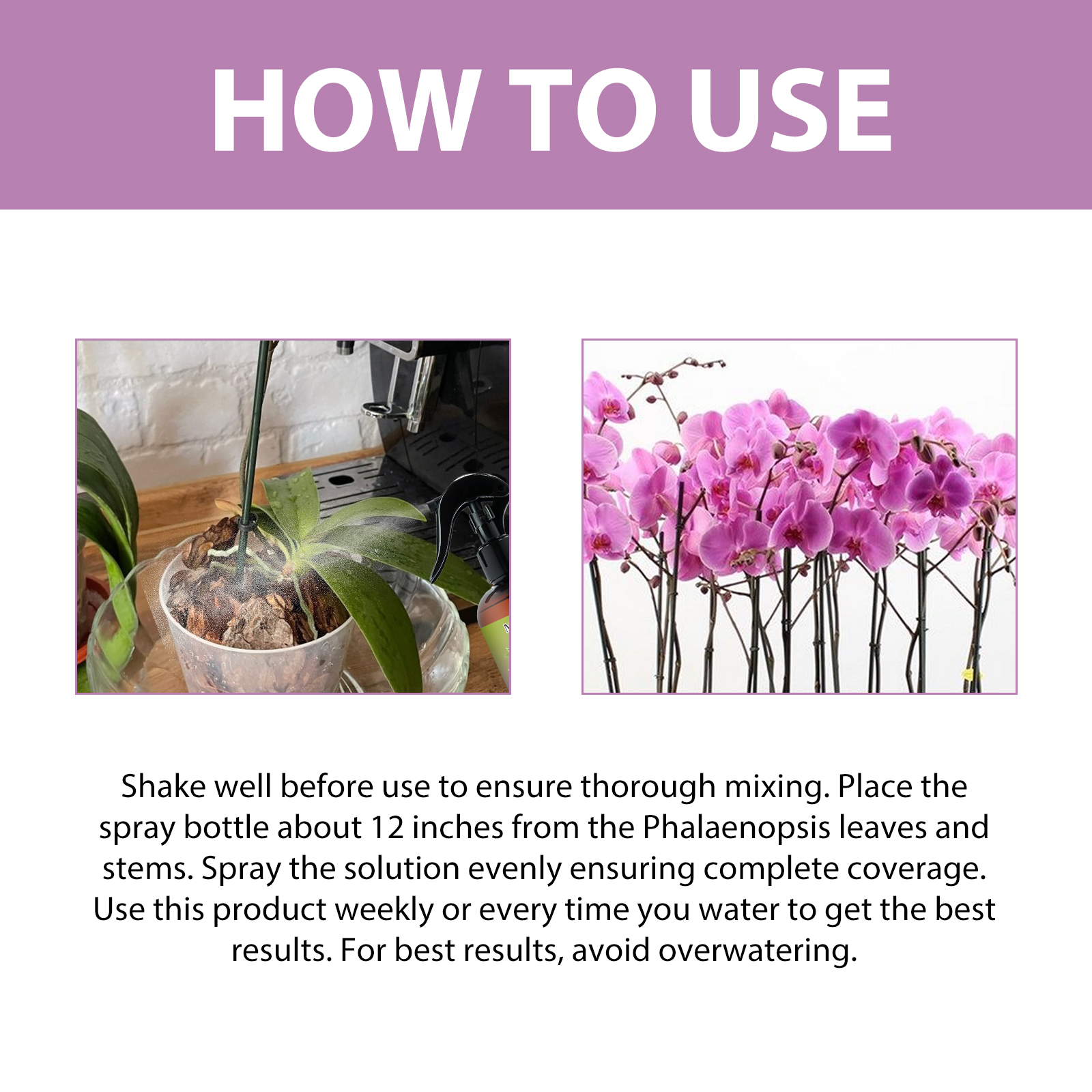 我们的蝴蝶兰肥料喷雾含有高活性苄氨基嘌呤,硫酸镁配合物,对氯苯氧乙酸。它可以促进蝴蝶兰叶片、花梗和根系的生长,使植株更加健康、茂盛,有助于提高蝴蝶兰花的质量,使它们更加丰富多彩,花瓣更饱满。它的使用方法很简单:使用前先摇匀,确保充分混合,将喷雾瓶放置在离蝴蝶兰叶子和茎大约12英寸的地方,均匀地喷洒溶液,确保完全覆盖每周或每次浇水时使用本产品,以获得最佳效果,为了达到最佳效果,请避免过度浇水。可以为其他植物提供稳定的养料,帮助它们更好地生长发育。