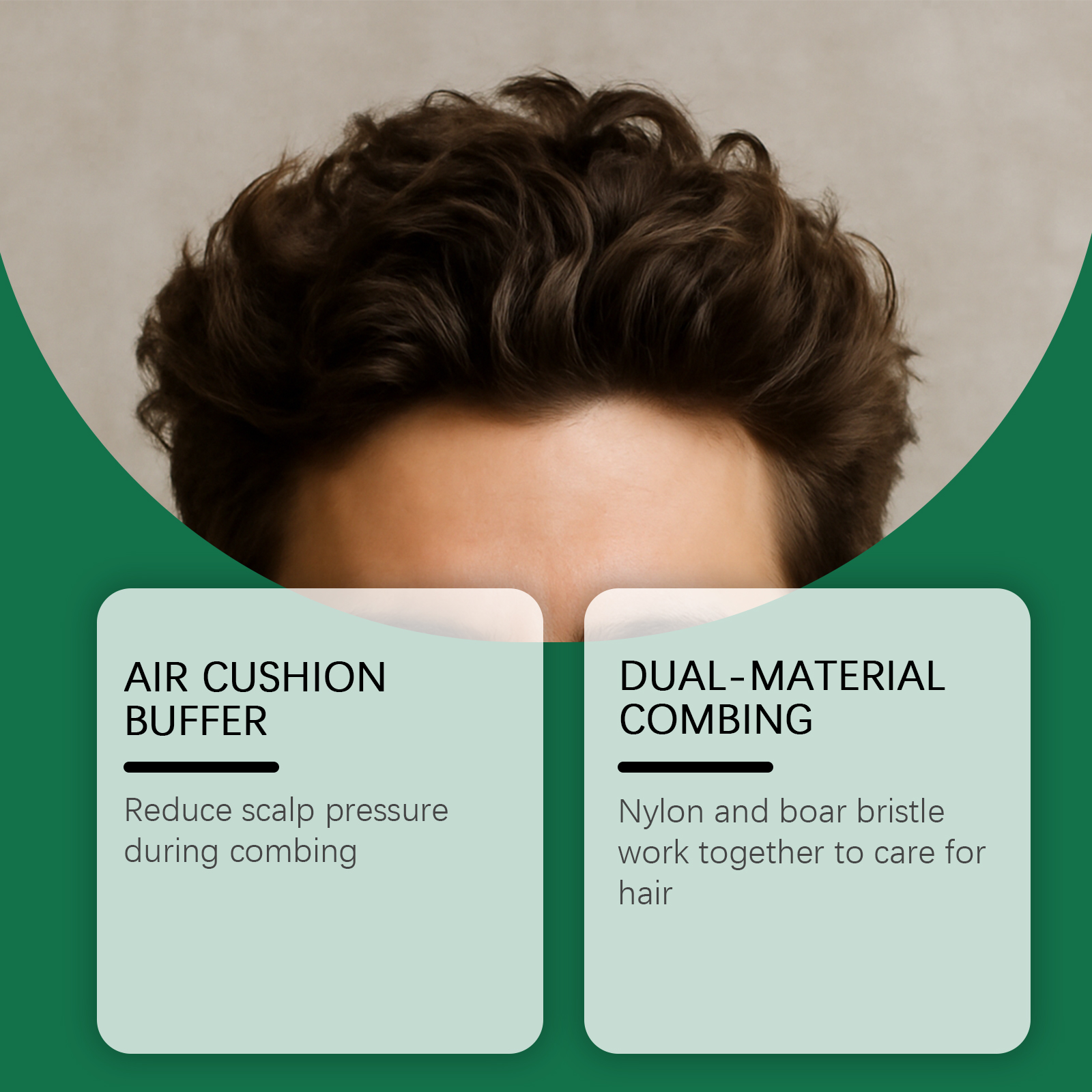 我们的白柄气垫鬃毛发刷,由塑料、猪鬃毛精心调配而成。专为梳理时减少头皮压力,尼龙和猪鬃毛协同作用,呵护头发设计。使用方法极为便捷:从发梢到发根轻轻梳理,使用缓冲动作以减少拉扯。使用吹风机在头发移动时进行造型。轻轻梳理湿发,需要进行造型。并根据并且它是白色手柄设计,便于握持和控制。