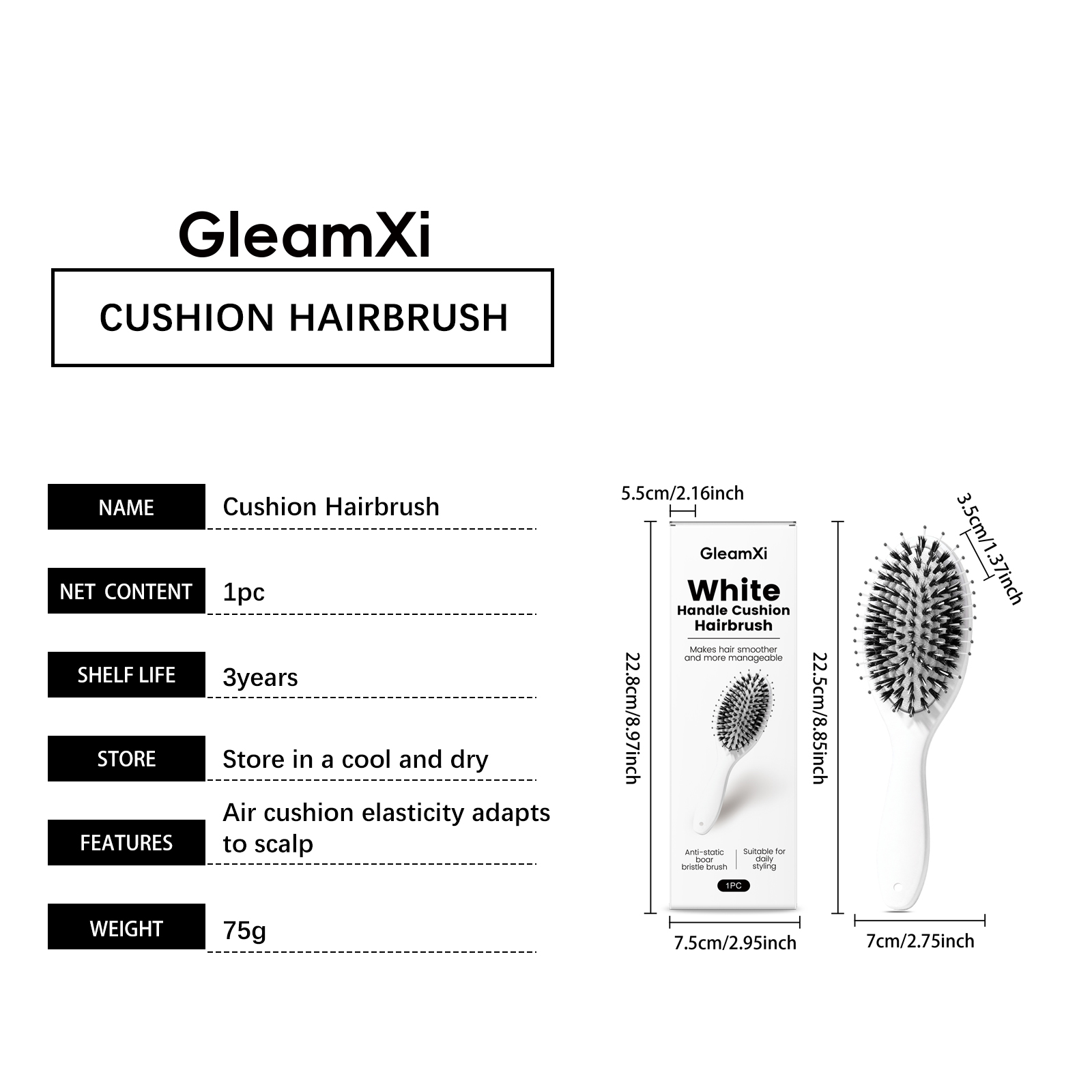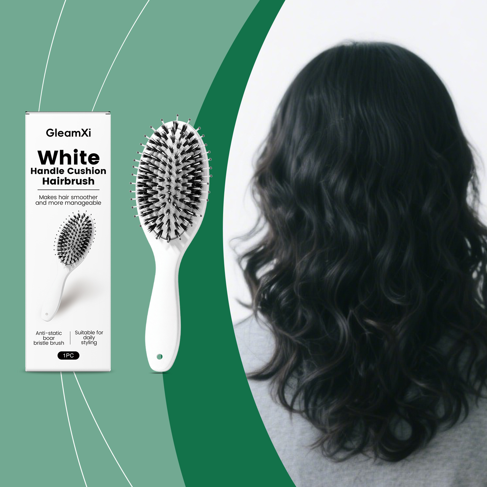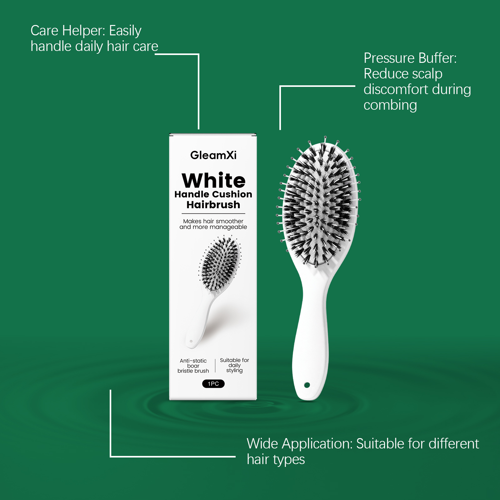 GleamXi White Handle Air Cushion Bristle Brush, Nylon Pig Bristle Airbag Comb, Daily Scalp Massage, Hair Styling And Combing