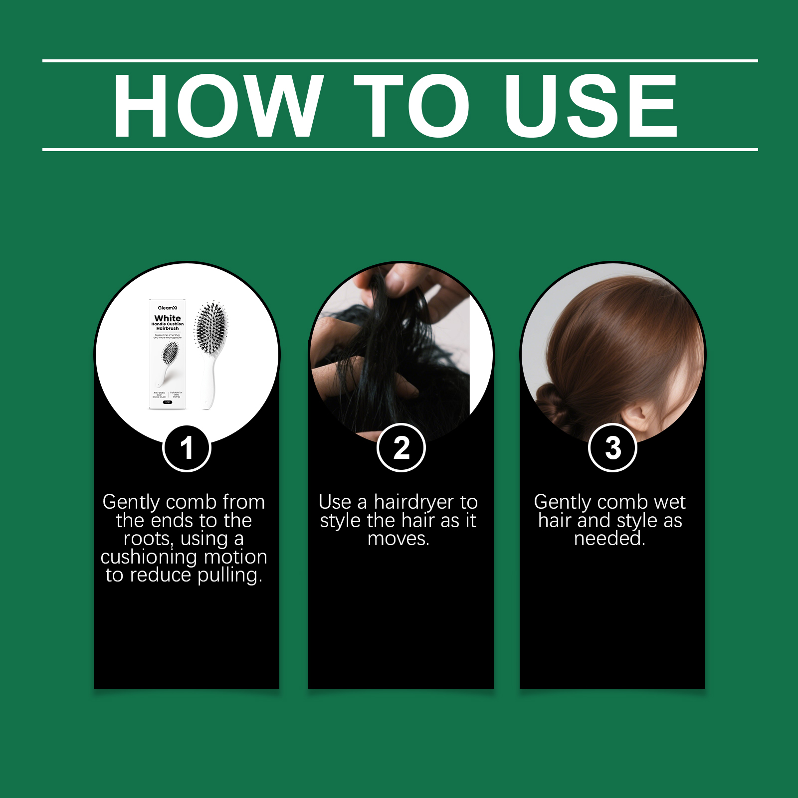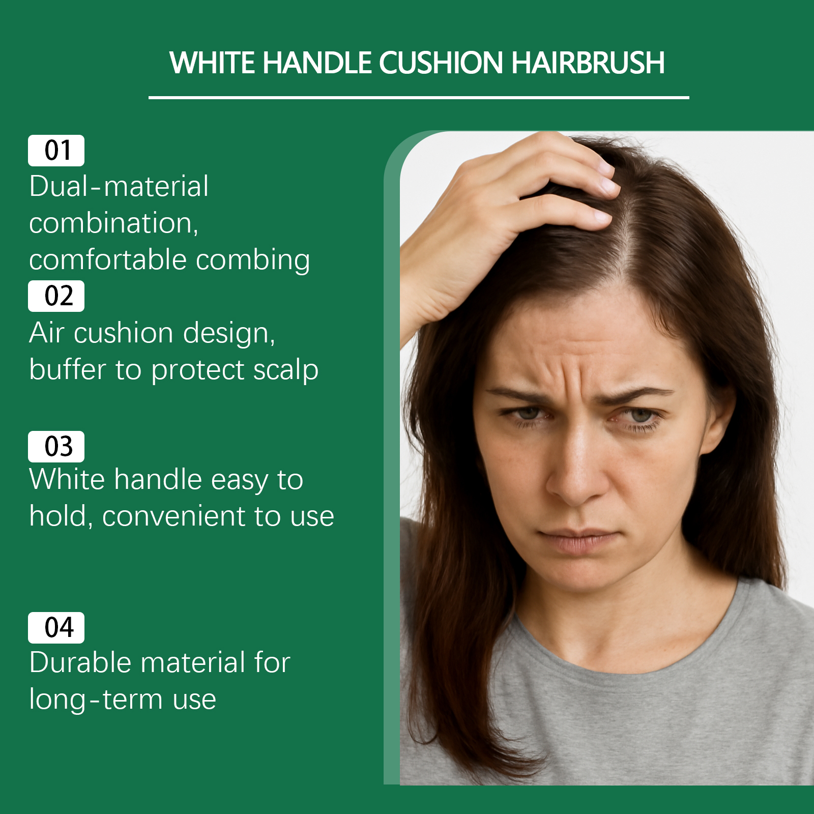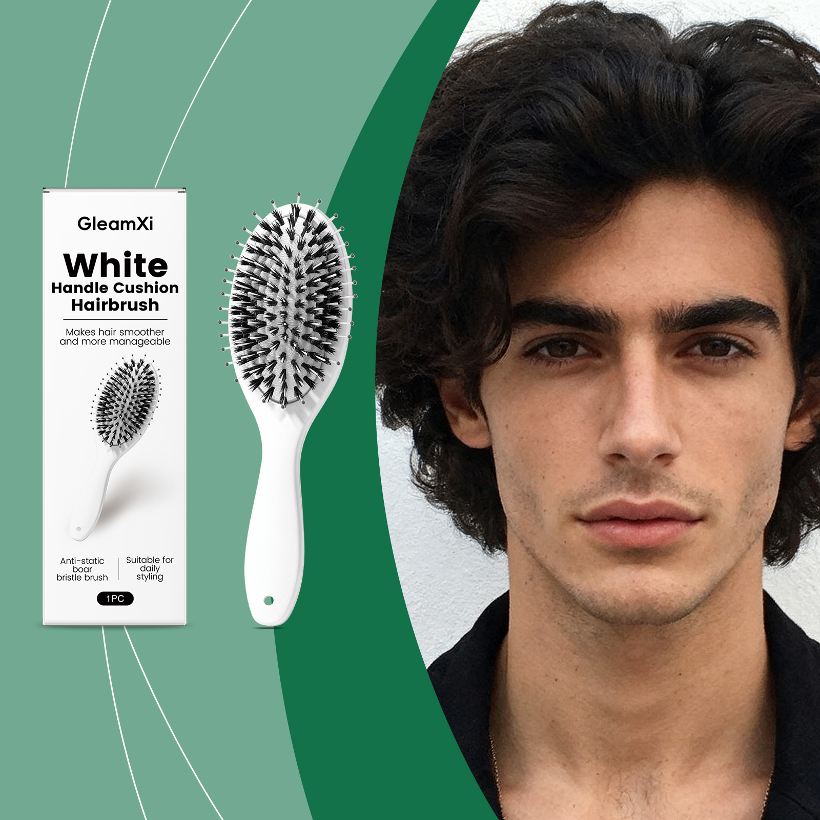 GleamXi White Handle Air Cushion Bristle Brush, Nylon Pig Bristle Airbag Comb, Daily Scalp Massage, Hair Styling And Combing