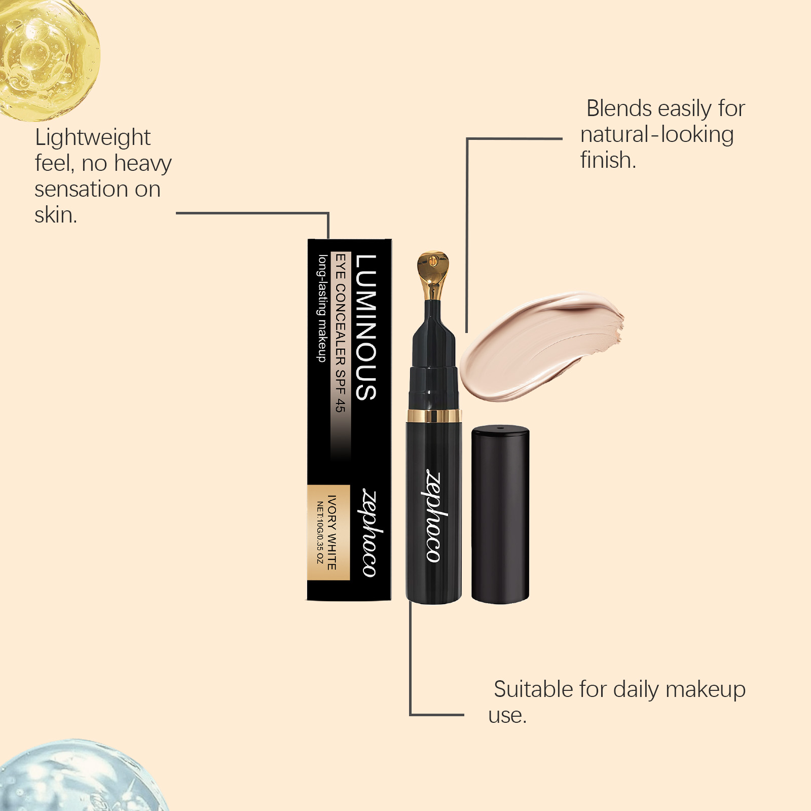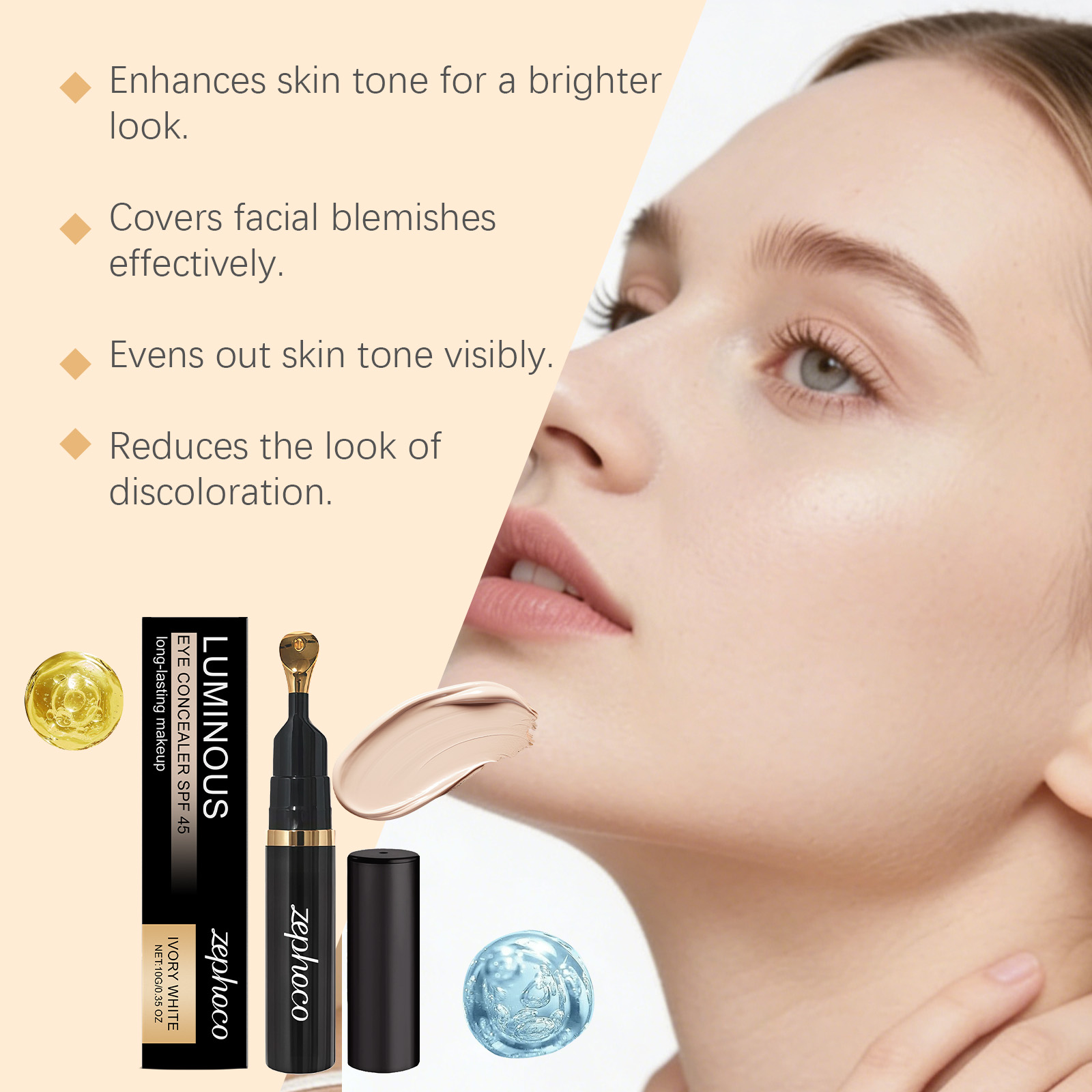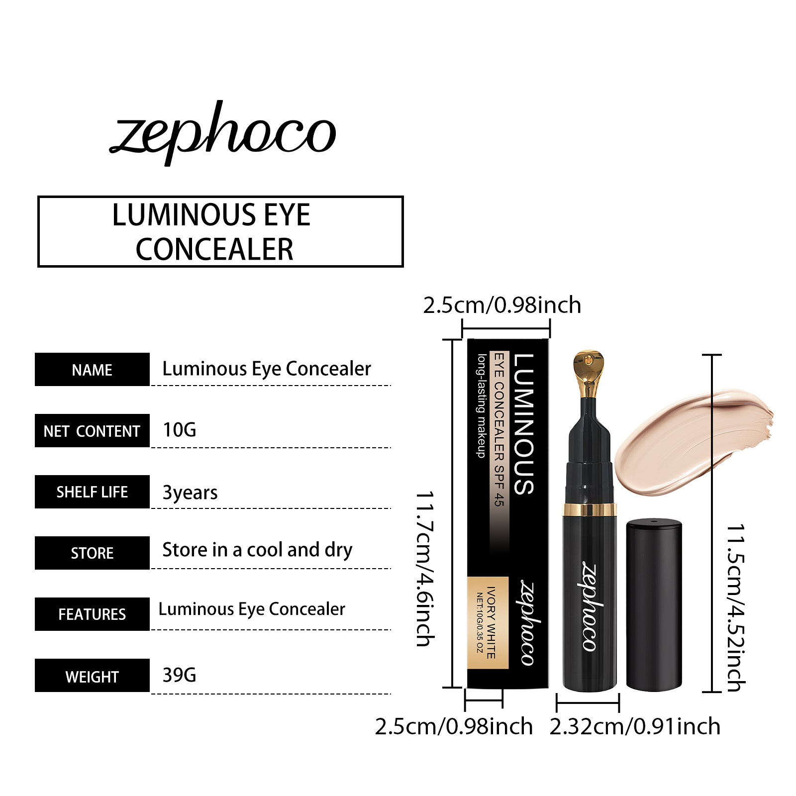 zephoco Ivory White Eye Concealer Is Light, Smooth, Even Out Skin Tone, Moisturizing, Matte, Clear, Long-Lasting And Hydrating