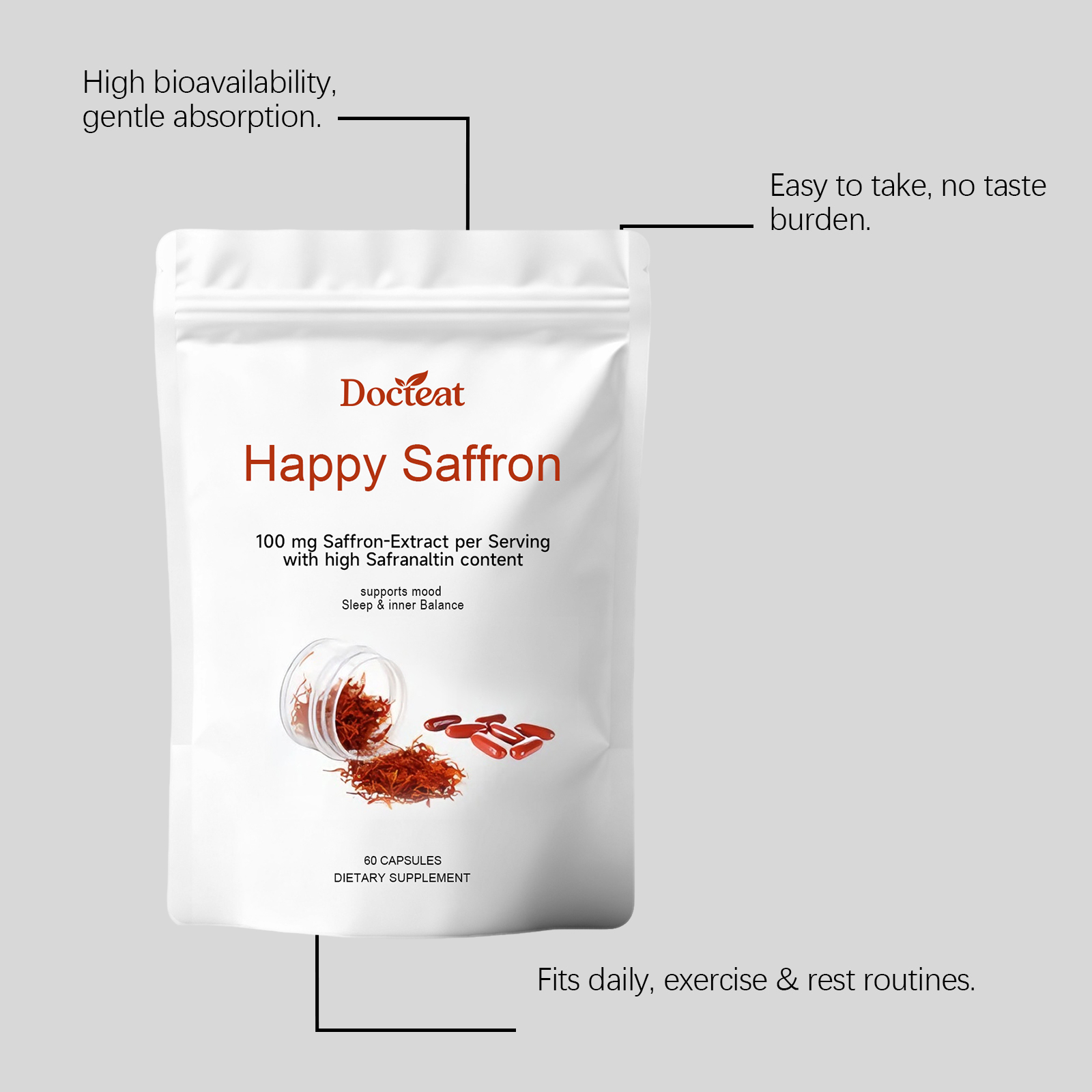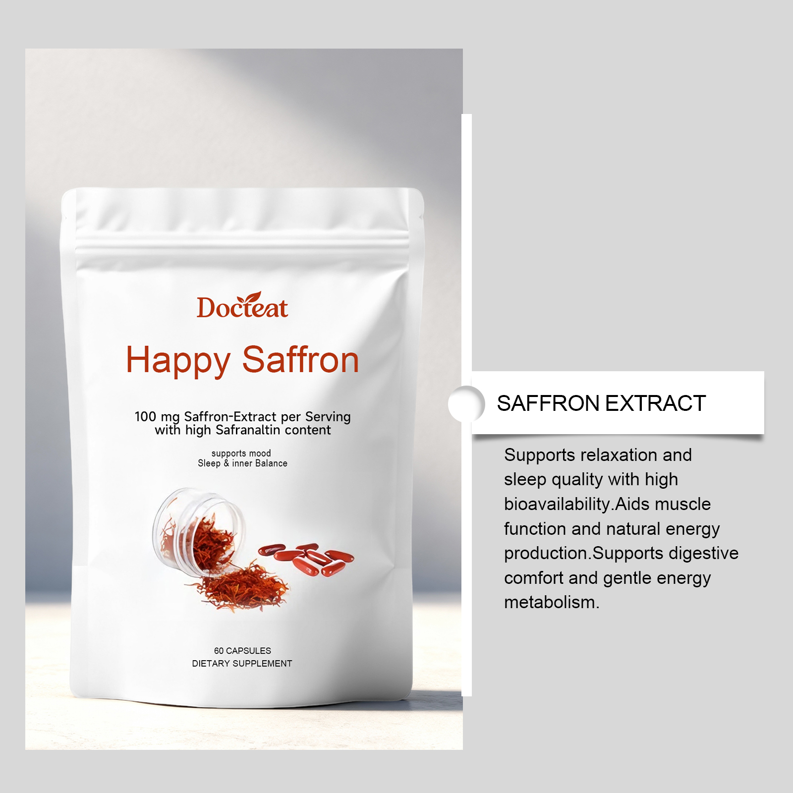 Docteat Saffron Capsules, Made From Plant Ingredients, Help Balance Your Emotional State And Fall Asleep Easily On A Daily Basis