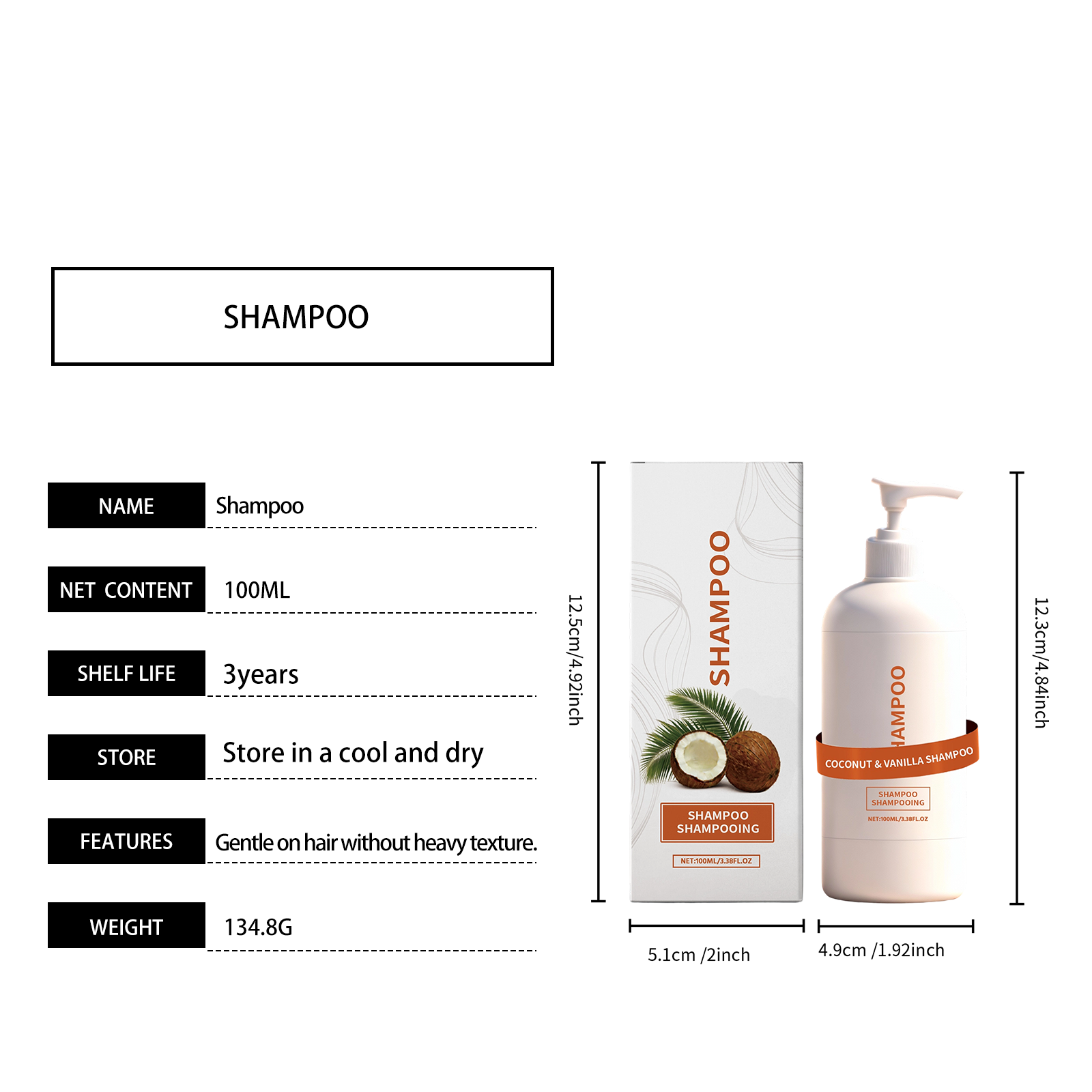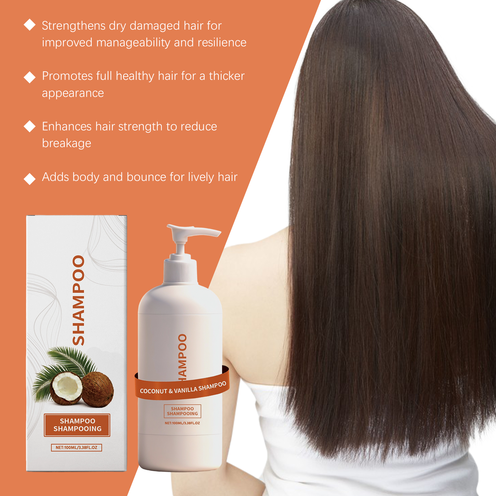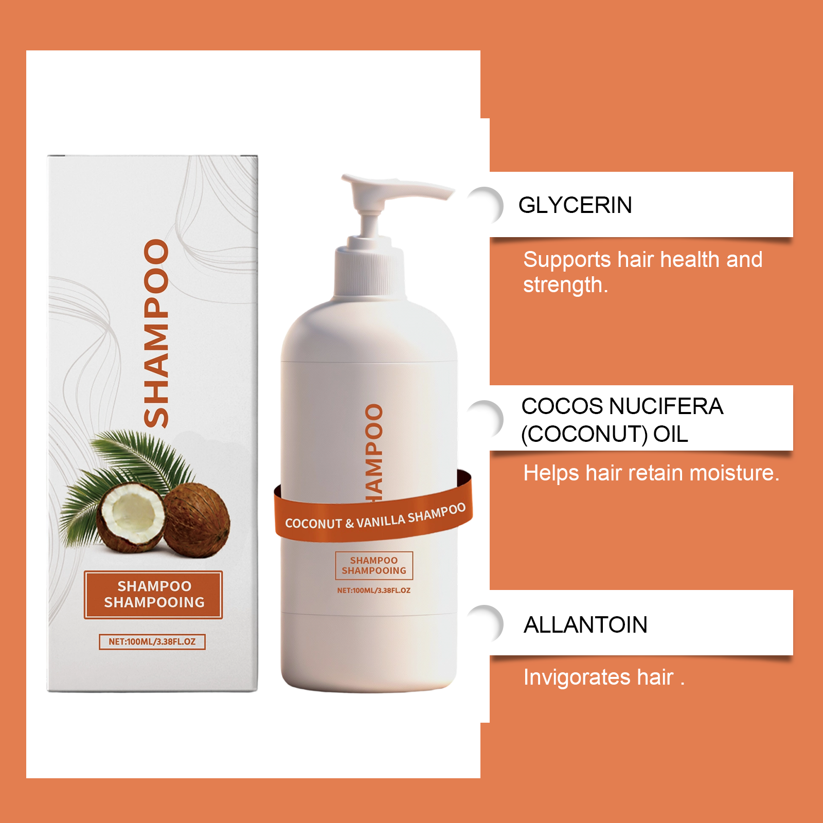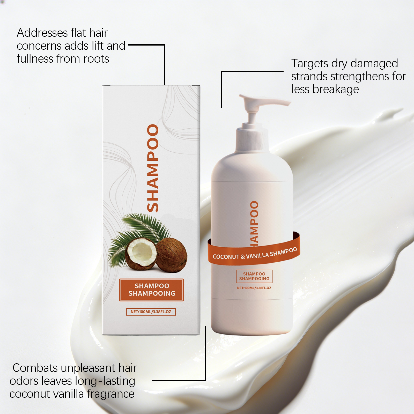 AMZ Coconut Vanilla Shampoo Plant Extract, Controls Oil, Volutes Hair, Cleanses, Hydrates, Softens, And Provides Refreshing And Non-Sticky Care