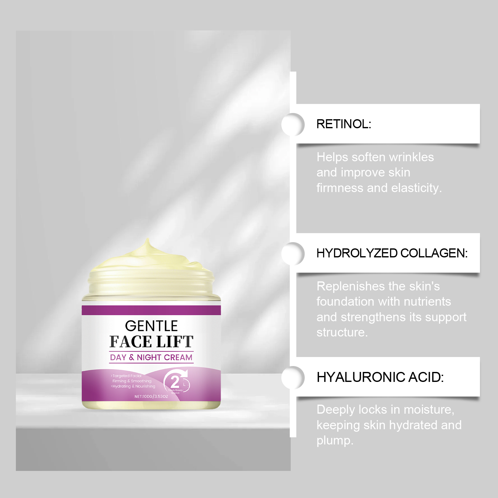 我们的视黄醇面霜,由水解胶原、透明质酸精心调配而成。专为深入渗透肌肤,从内而外焕发活力设计。使用方法极为便捷:1.清洁并擦干皮肤。2.将适量本产品均匀涂抹于面部。3.轻柔按摩,以促进吸收。并且可以提供日间保护和滋养,以及夜间修复与焕新,为您的肌肤提供全天候防护。