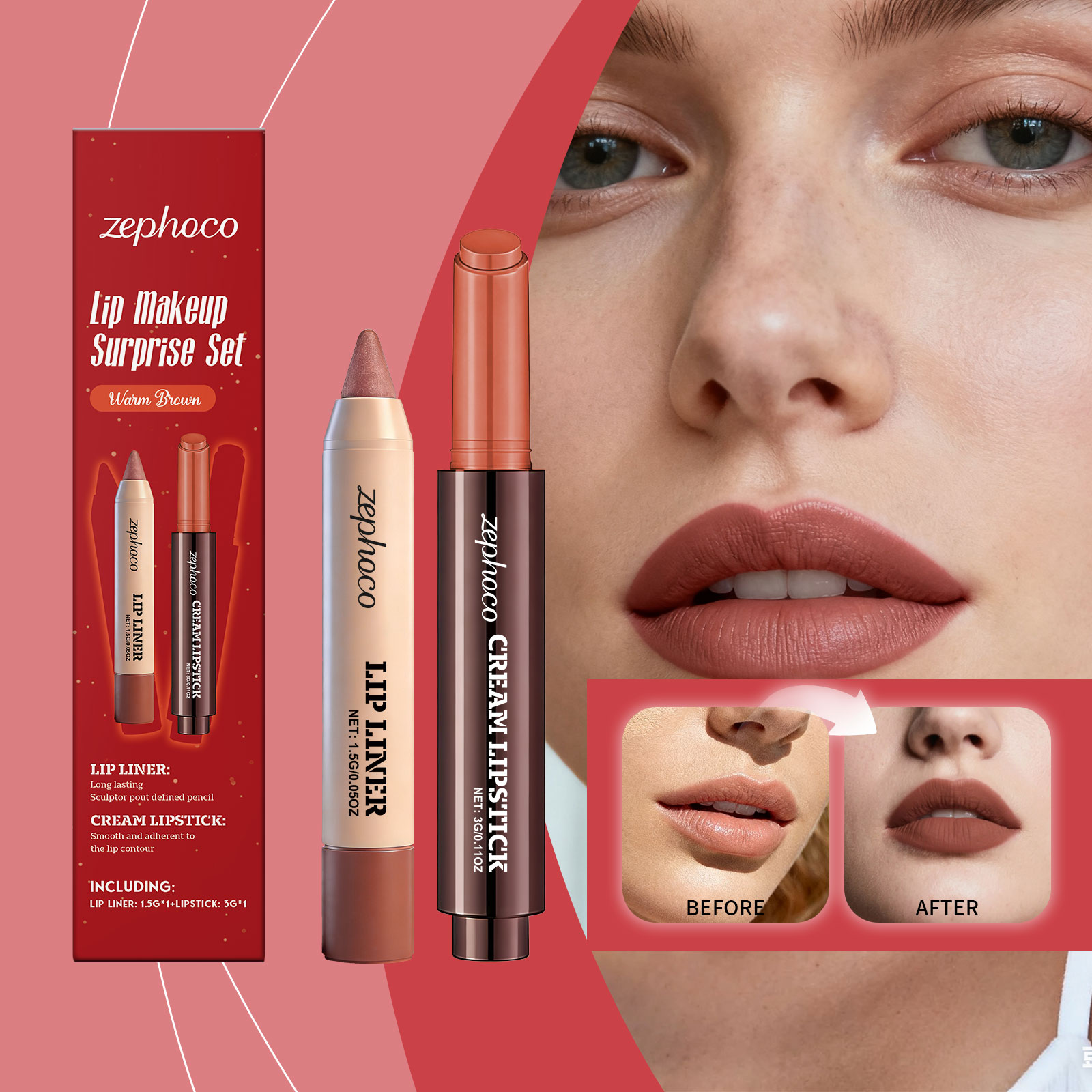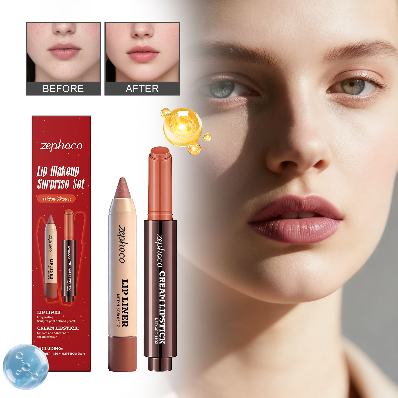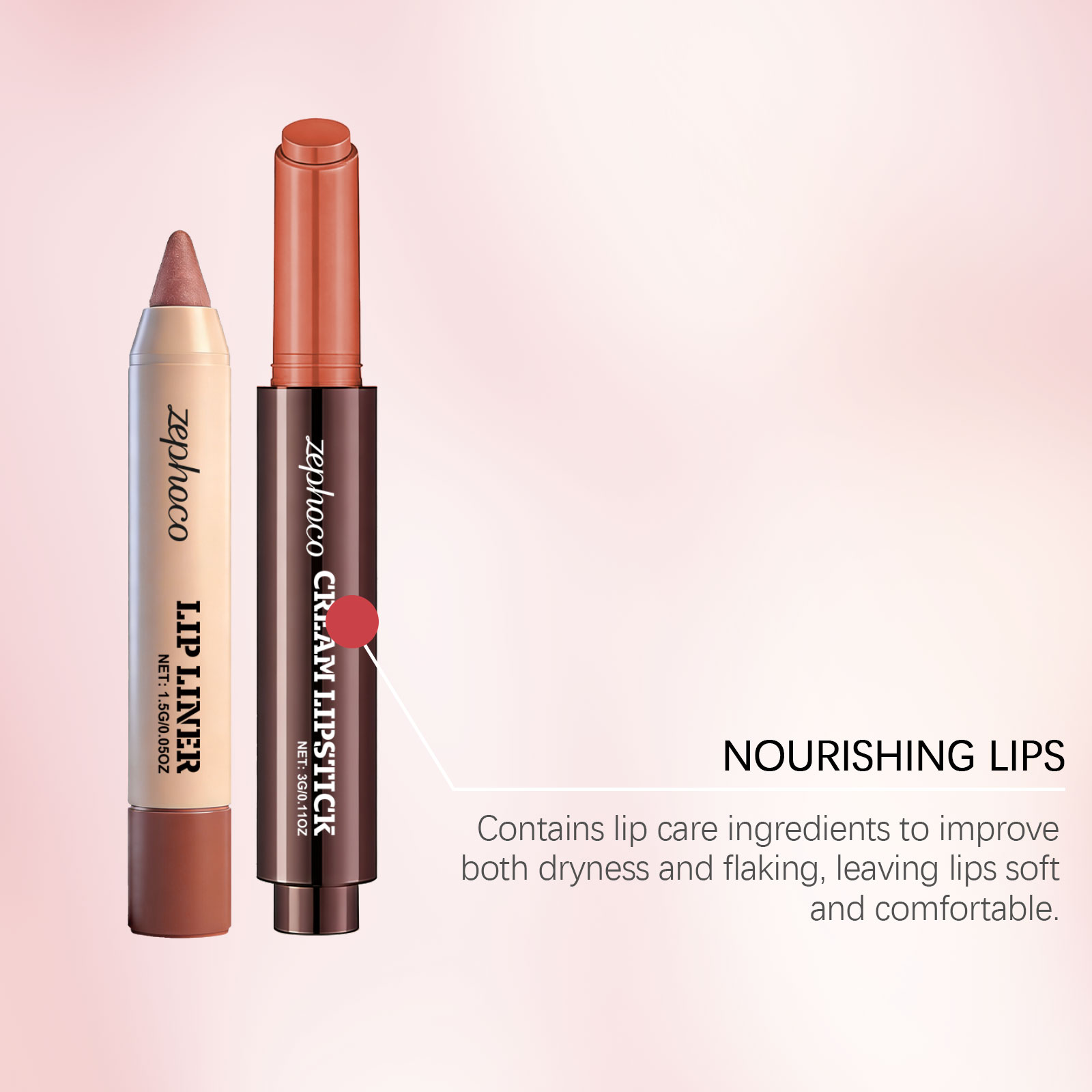 zephoco Qiyun Lip Makeup Set (Warm Milk Tea Brown) Natural And Easy-To-Color Commuting Lip Gloss