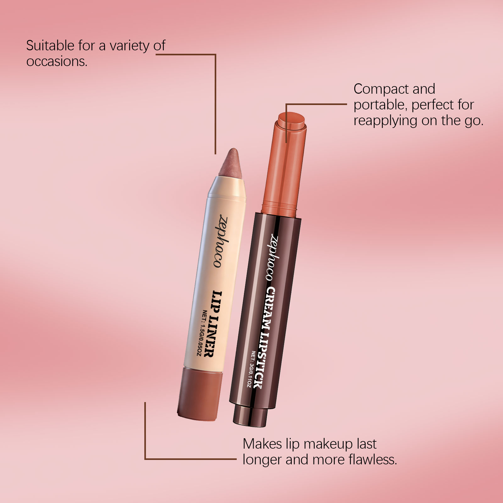 我们的绮韵唇妆组合(暖调奶茶棕),由唇线笔:改性玉米淀粉、炭粉,唇膏:矿油、蜂蜡精心调配而成。专为适用于多种场合,小巧便携,非常适合随身补涂设计。使用方法极为便捷:1. 清洁并擦干双唇。2. 首先,用唇线笔勾勒出理想的唇形。3.然后按压出适量唇膏,均匀涂抹于双唇,然后轻轻抿开即可。并且它可以防止因水或食物导致褪色,减少补妆需求。
