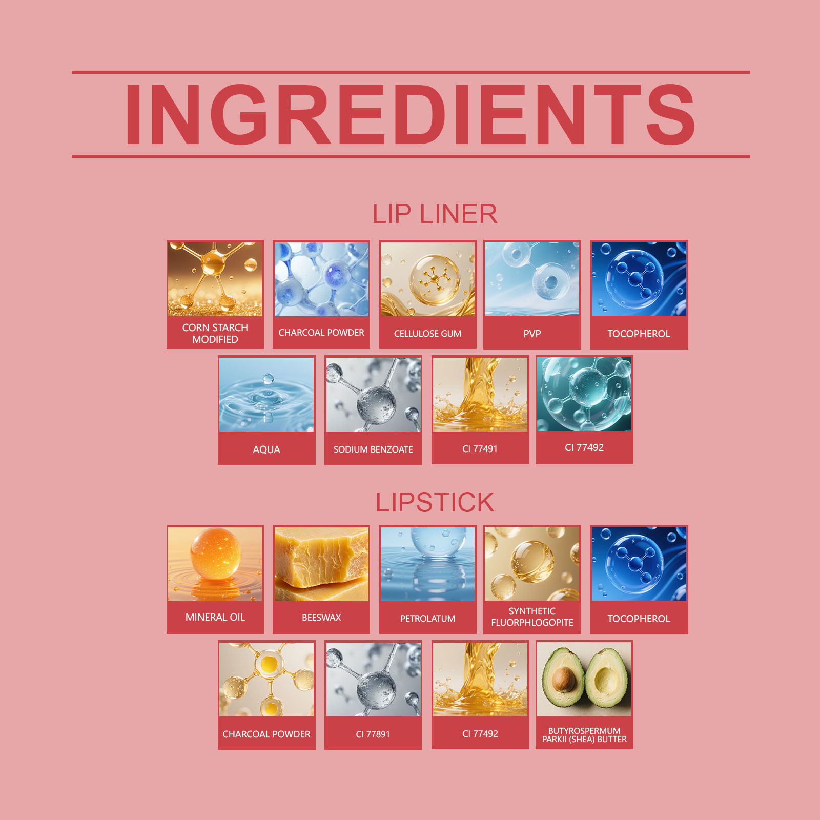 | 成分 | 唇线笔:改性玉米淀粉、炭粉,唇膏:矿油、蜂蜡 |