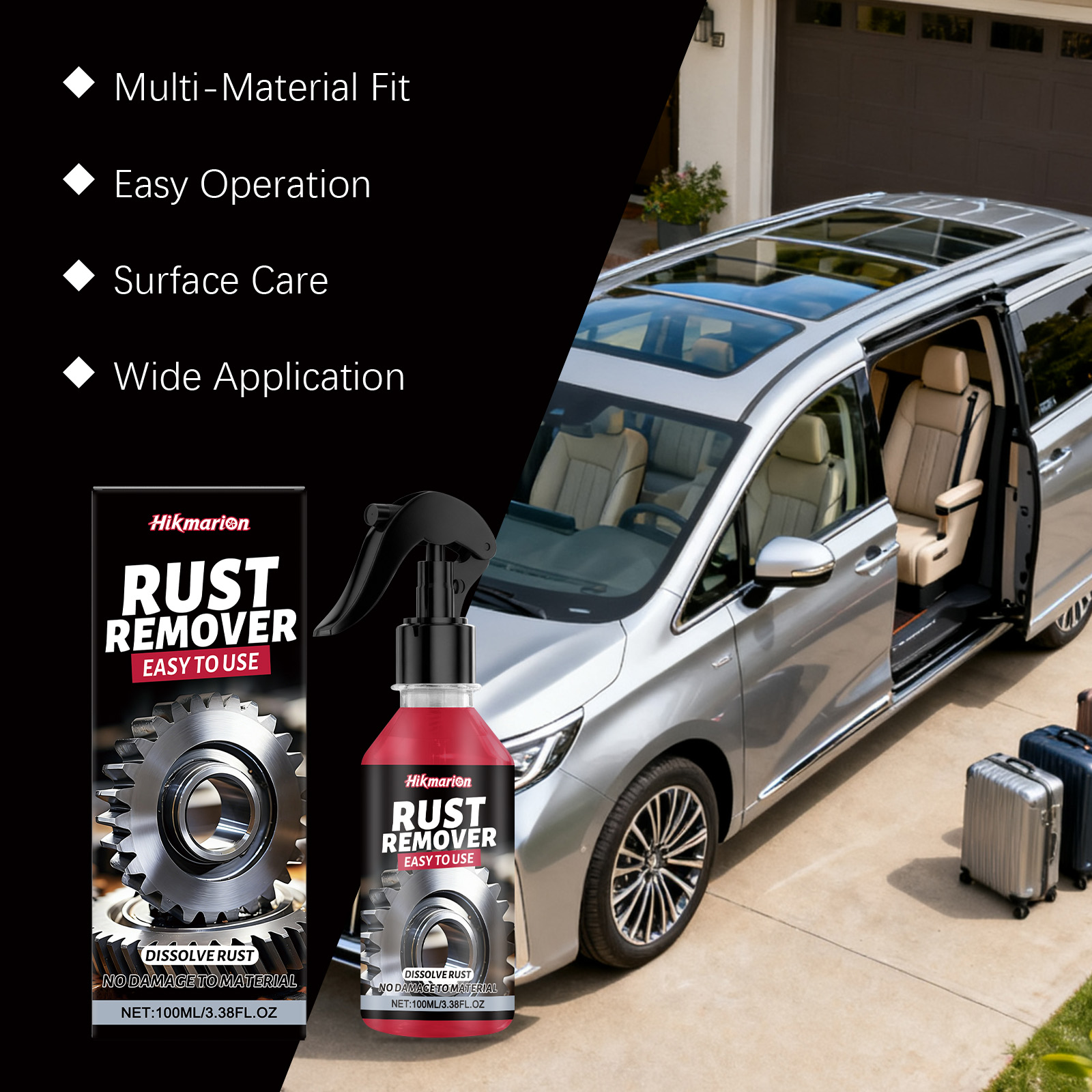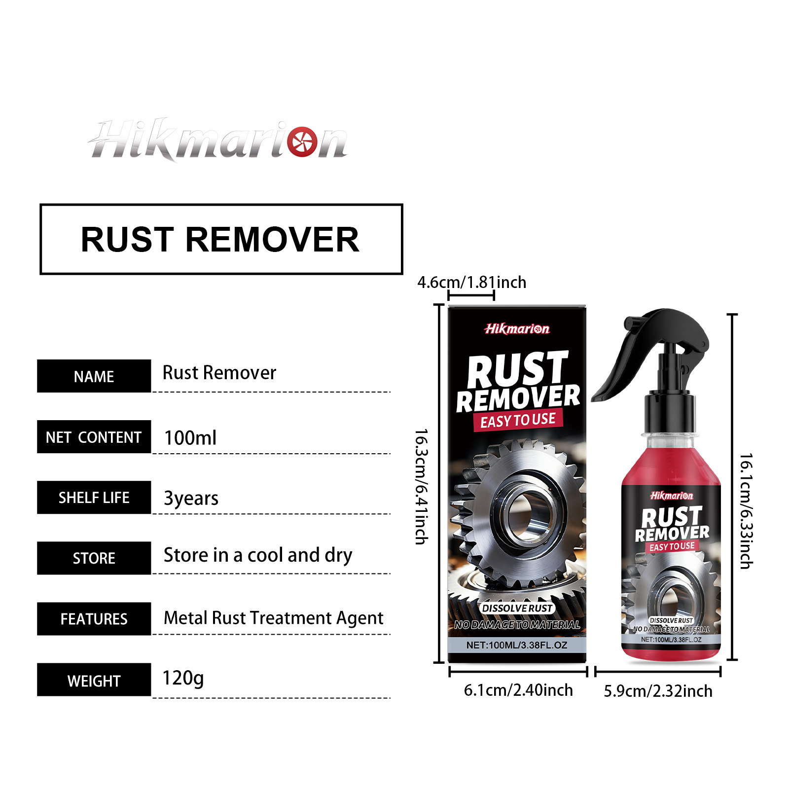 Hikmarion Rust Removal Spray, Metal Rust And Dirt Removal, Polishing, Rust Cleaning And Care Spray For Car Parts