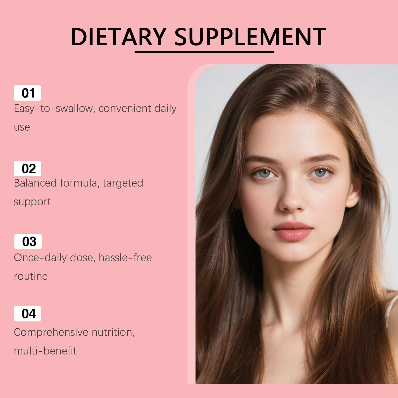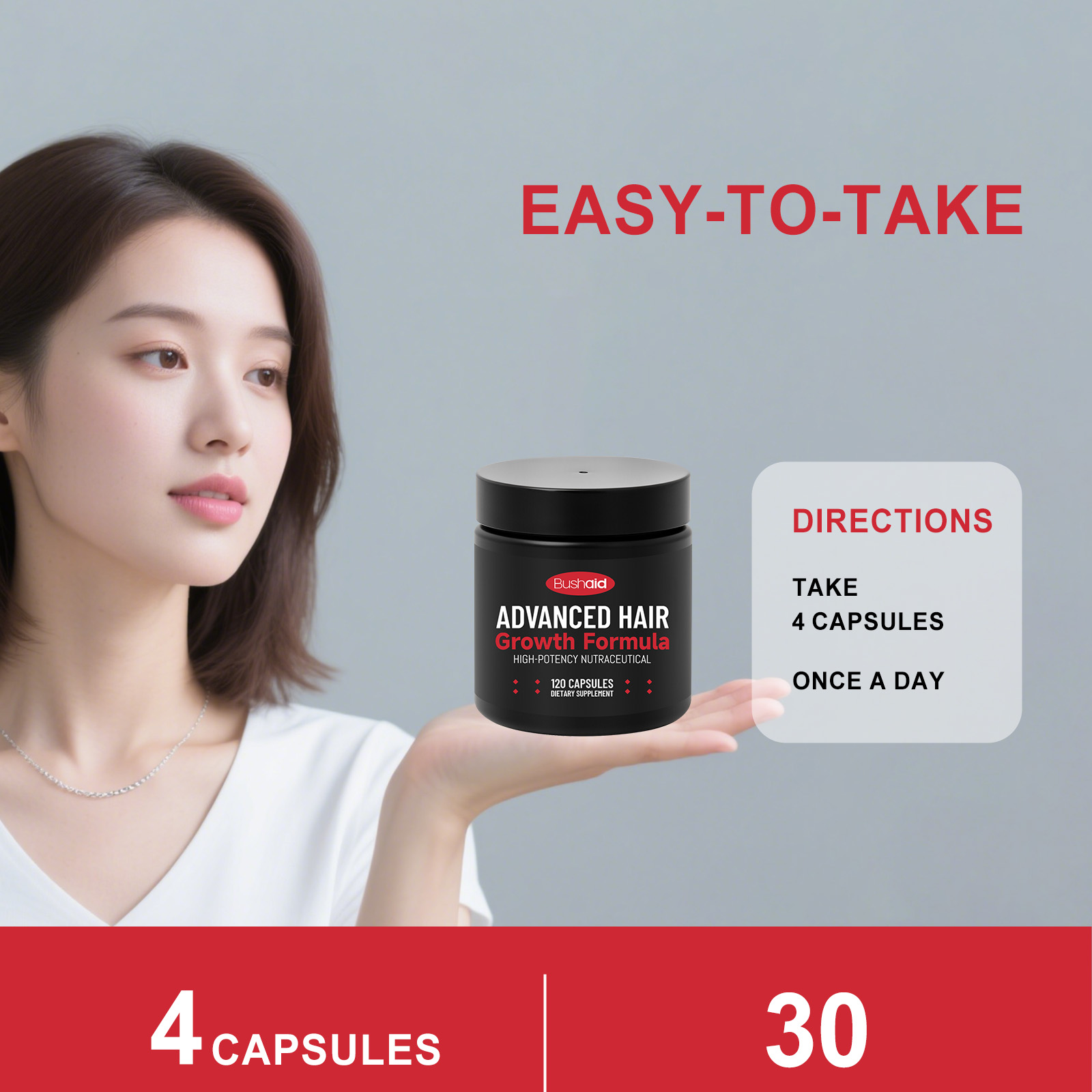 我们的发量补充支持胶囊,由维生素C、维生素E精心调配而成。专为支持头发强韧,助力健康生长,呵护皮肤指甲,维持良好状态设计。使用方法极为便捷:每天一次,每次4粒。并且它可以辅助细胞能量,支持抗氧化活动,助力营养代谢,守护整体健康。