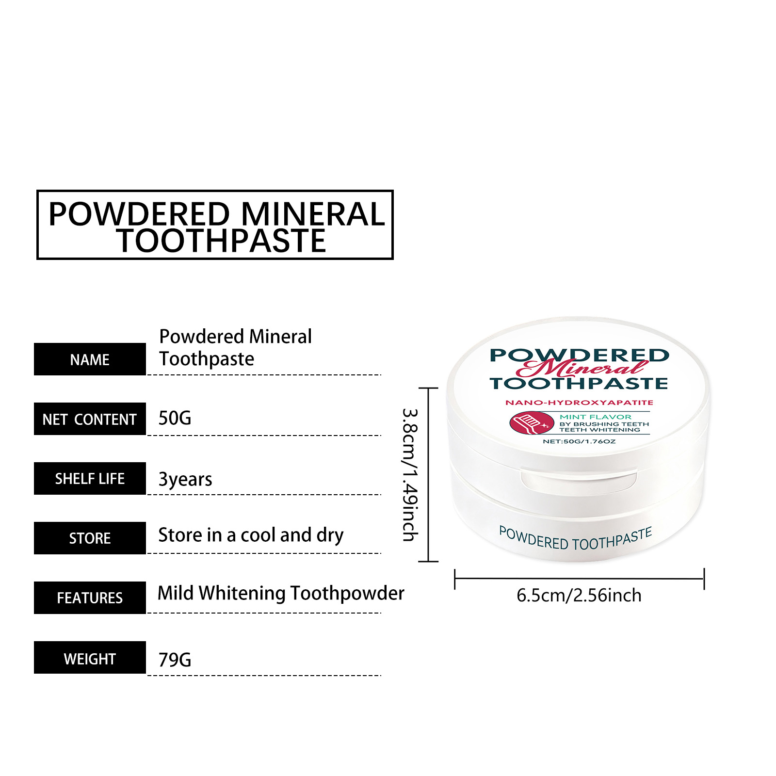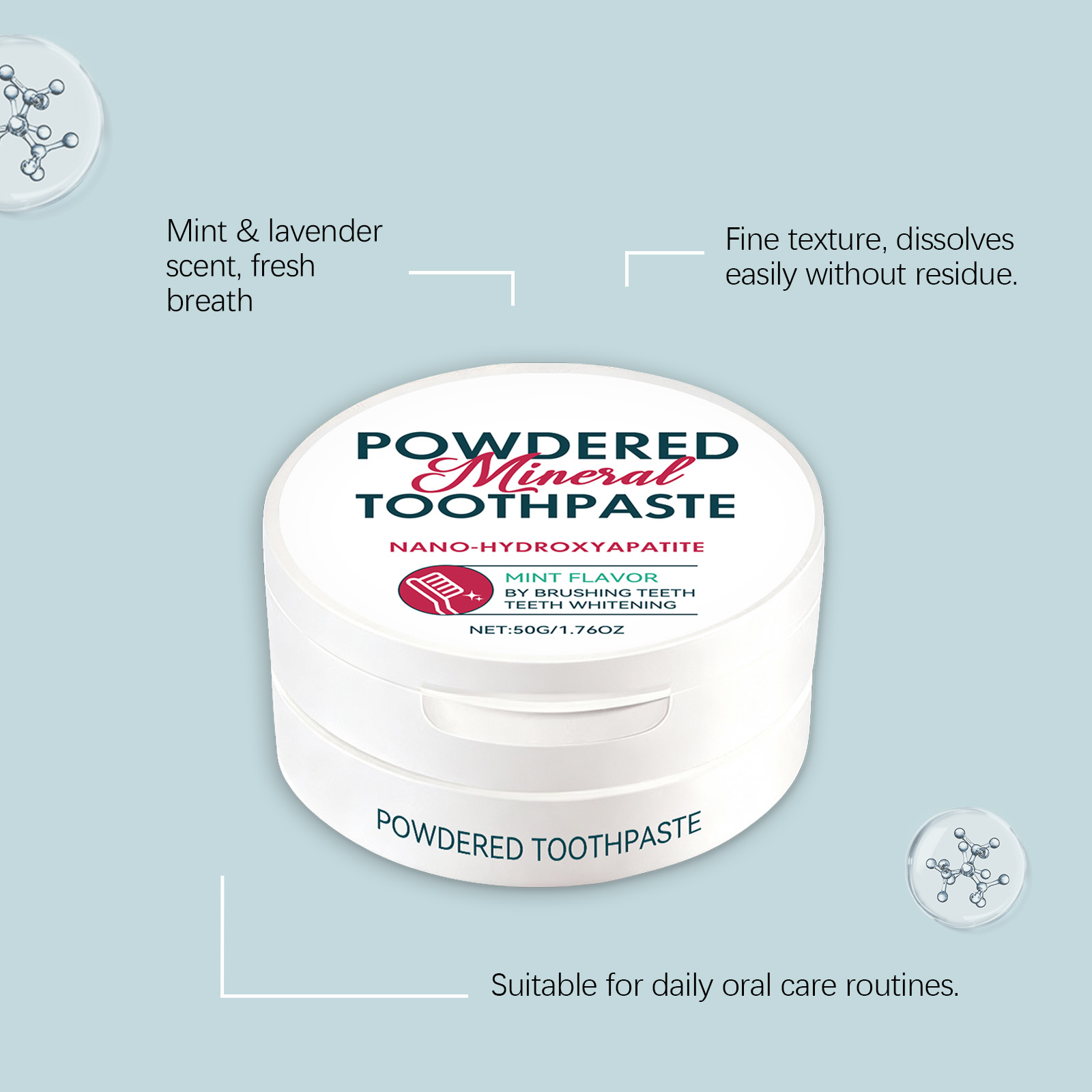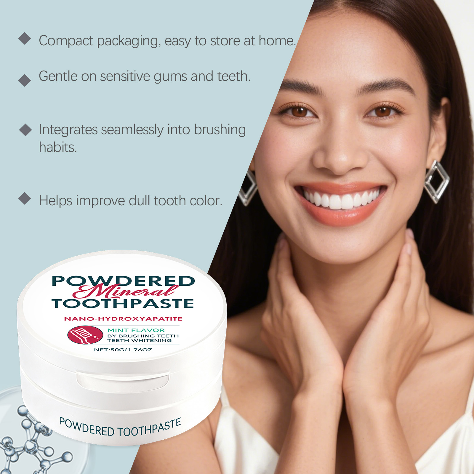 AMZ Brightening Care Tooth Powder Fine, Powdery, Mint, Refreshing, Portable, Multi-Scenario, Freshening Breath, Oral Hygiene Tooth Powder