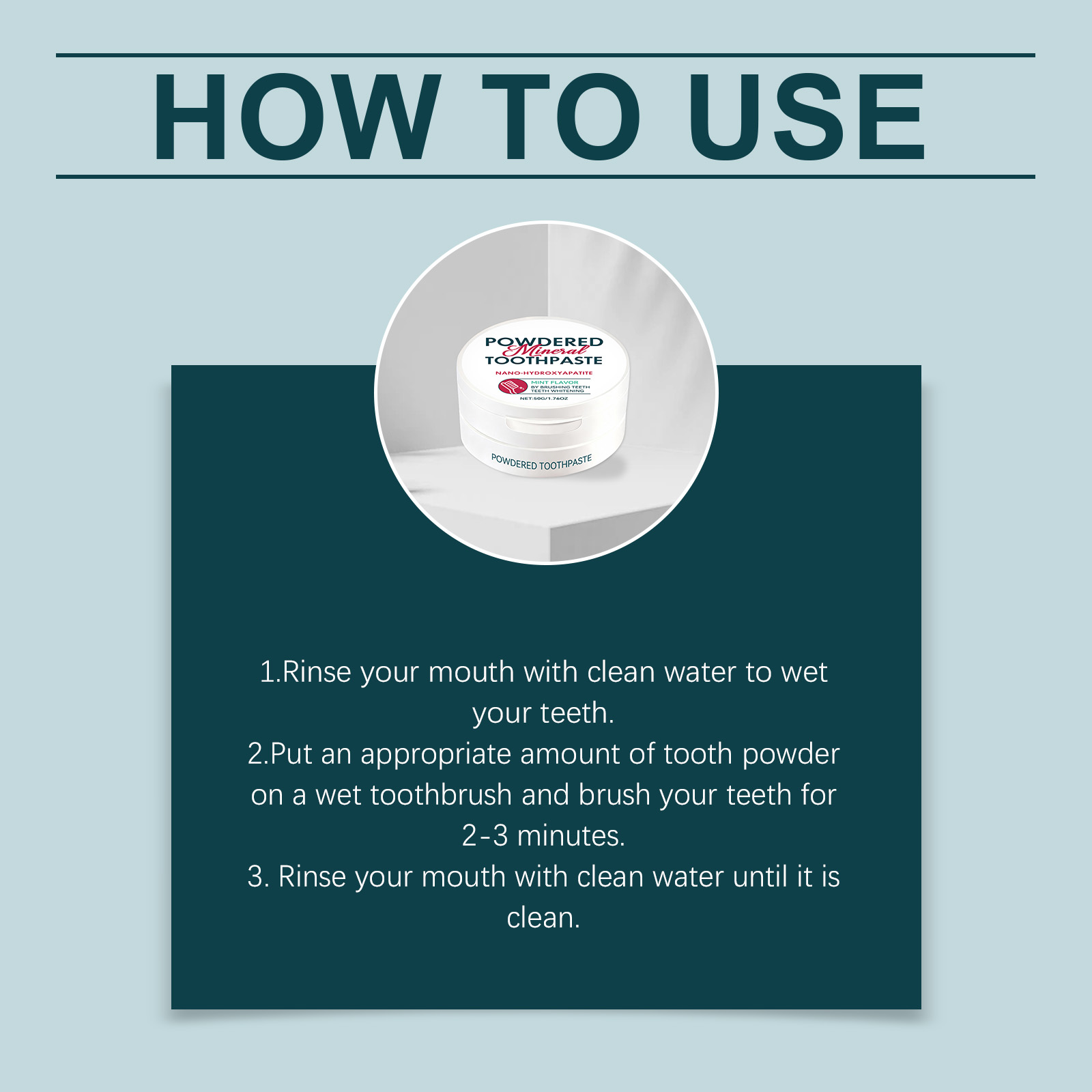 我们的亮泽护理牙粉,由薄荷醇、羟基磷灰石精心调配而成。专为美白牙齿外观设计。使用方法极为便捷:1.用清水漱口,湿润牙齿。2.将适量牙粉放在湿润的牙刷上,刷牙2-3分钟。3.用清水漱口直至口腔干净。并且可以维持牙龈健康。