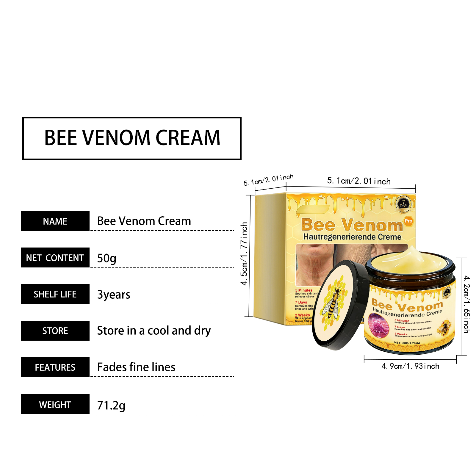 AMZ Bee Venom Facial Care Cream, With A Gentle Formula, Is A Daily Skin Care Cream That Nourishes The Delicate, Smooth And Moisturizing Facial Skin