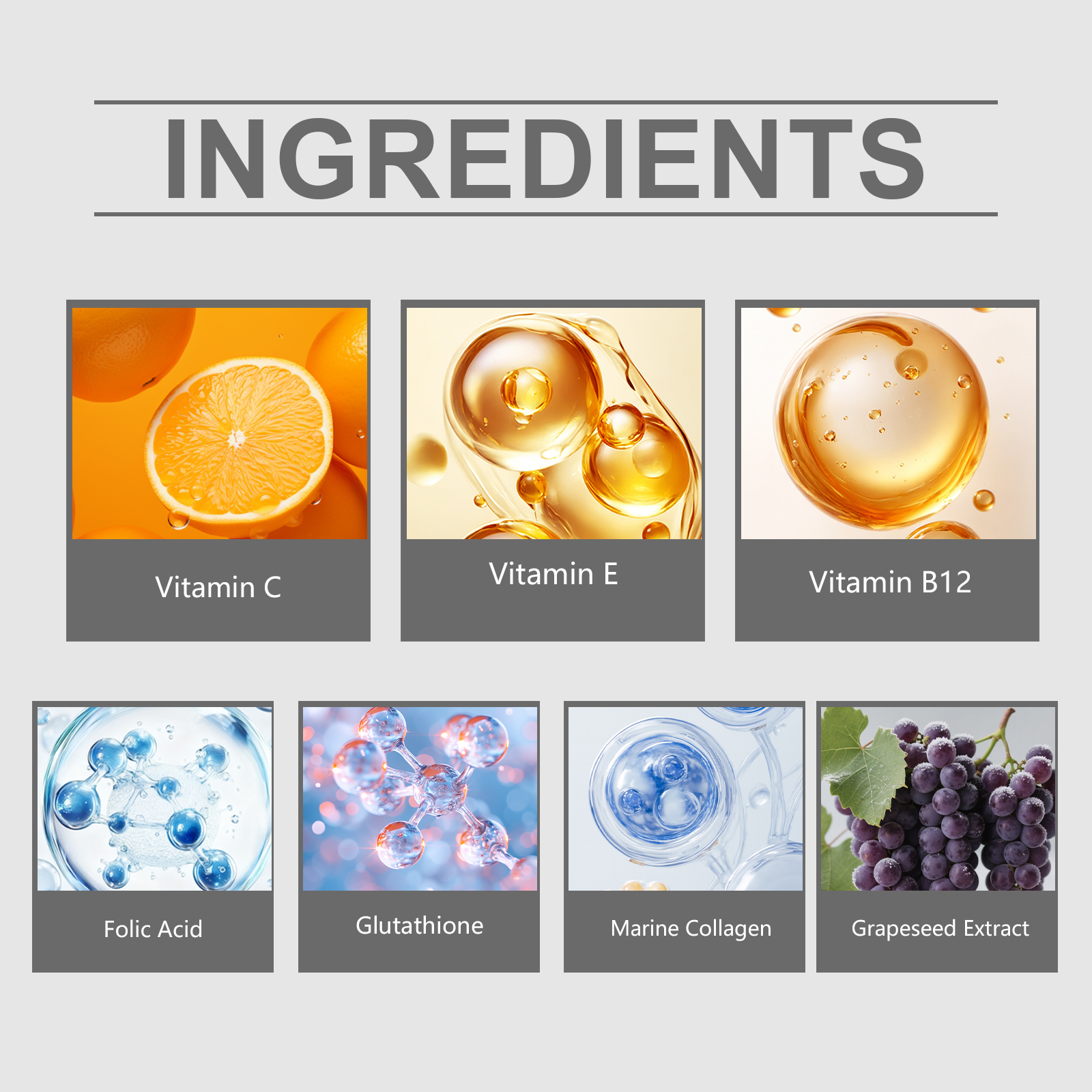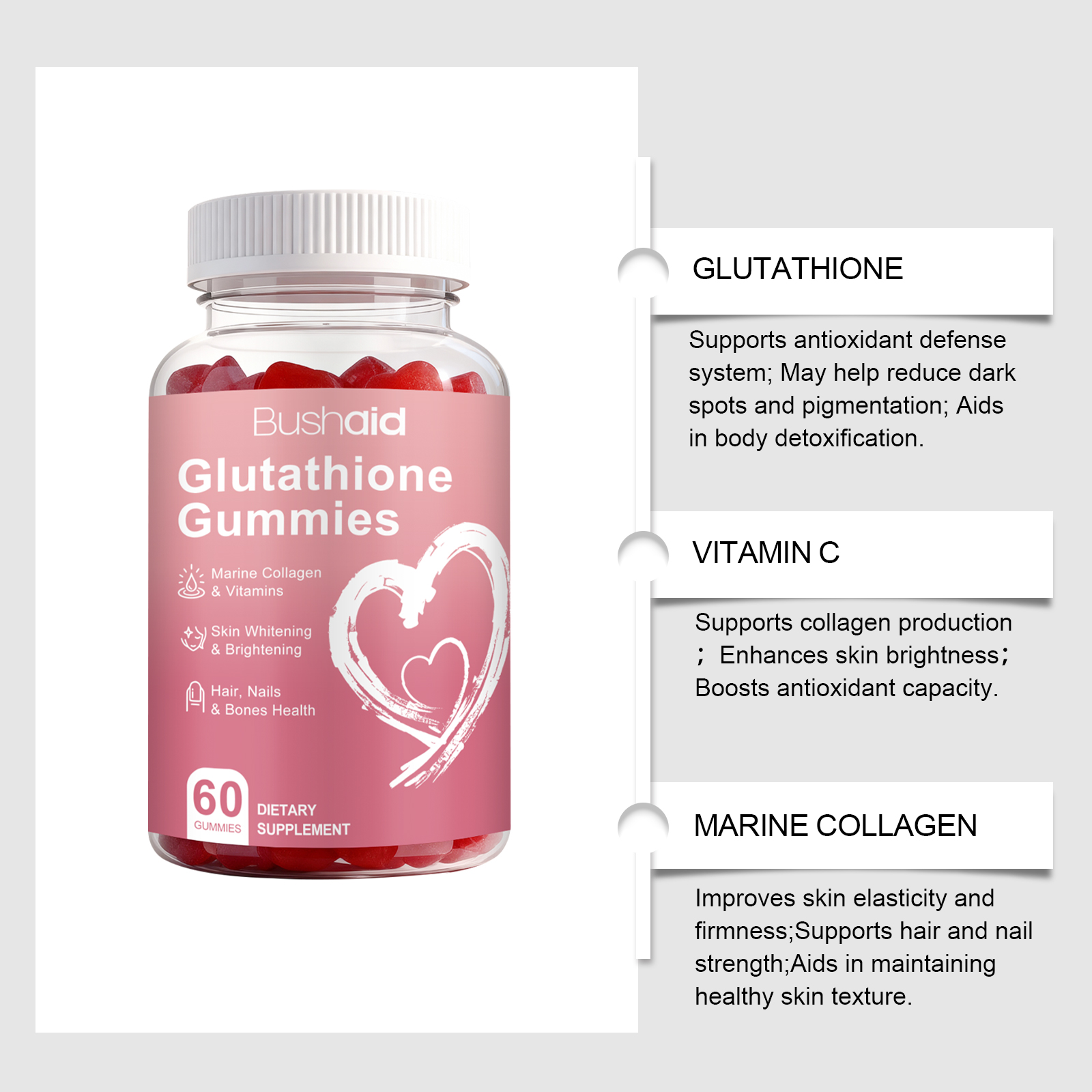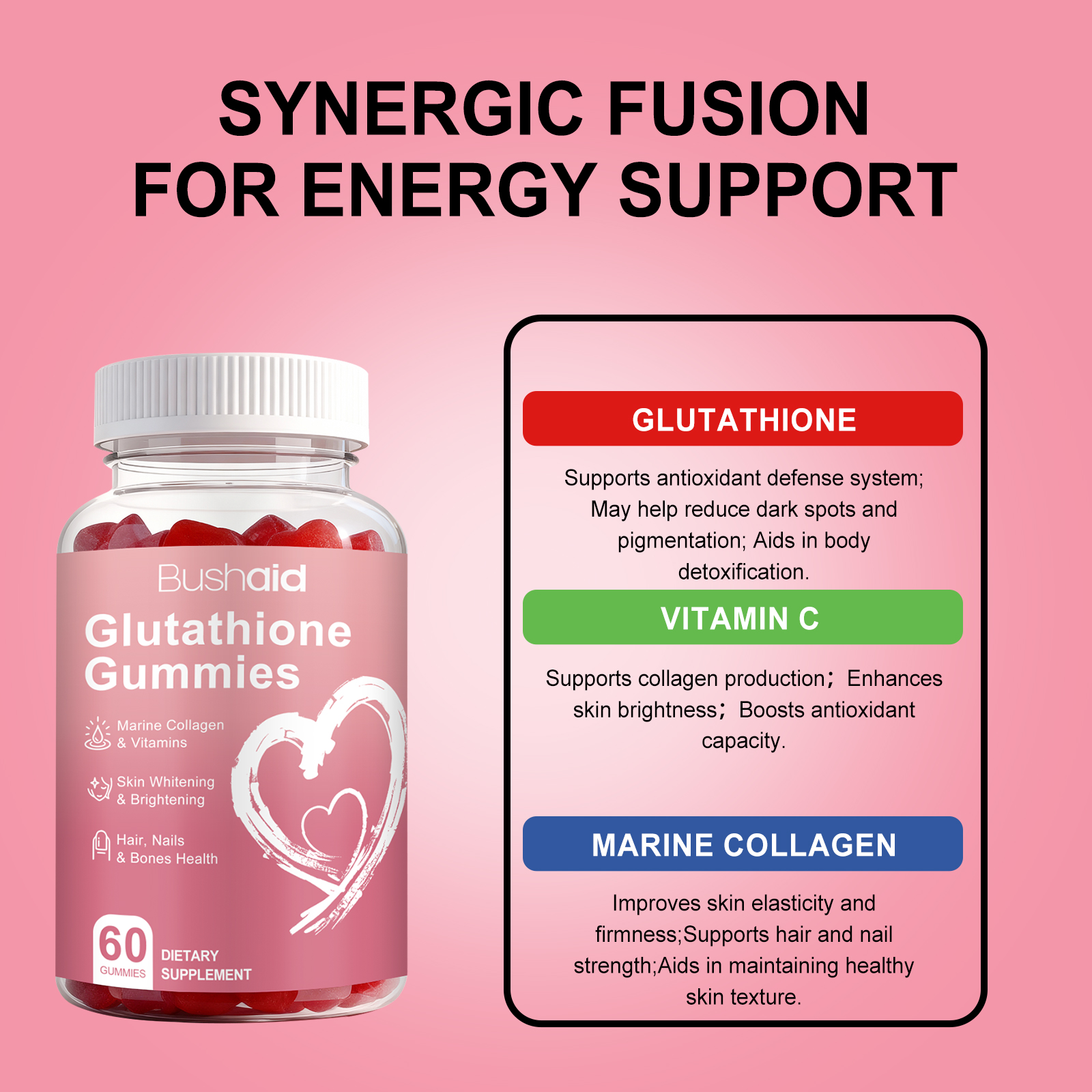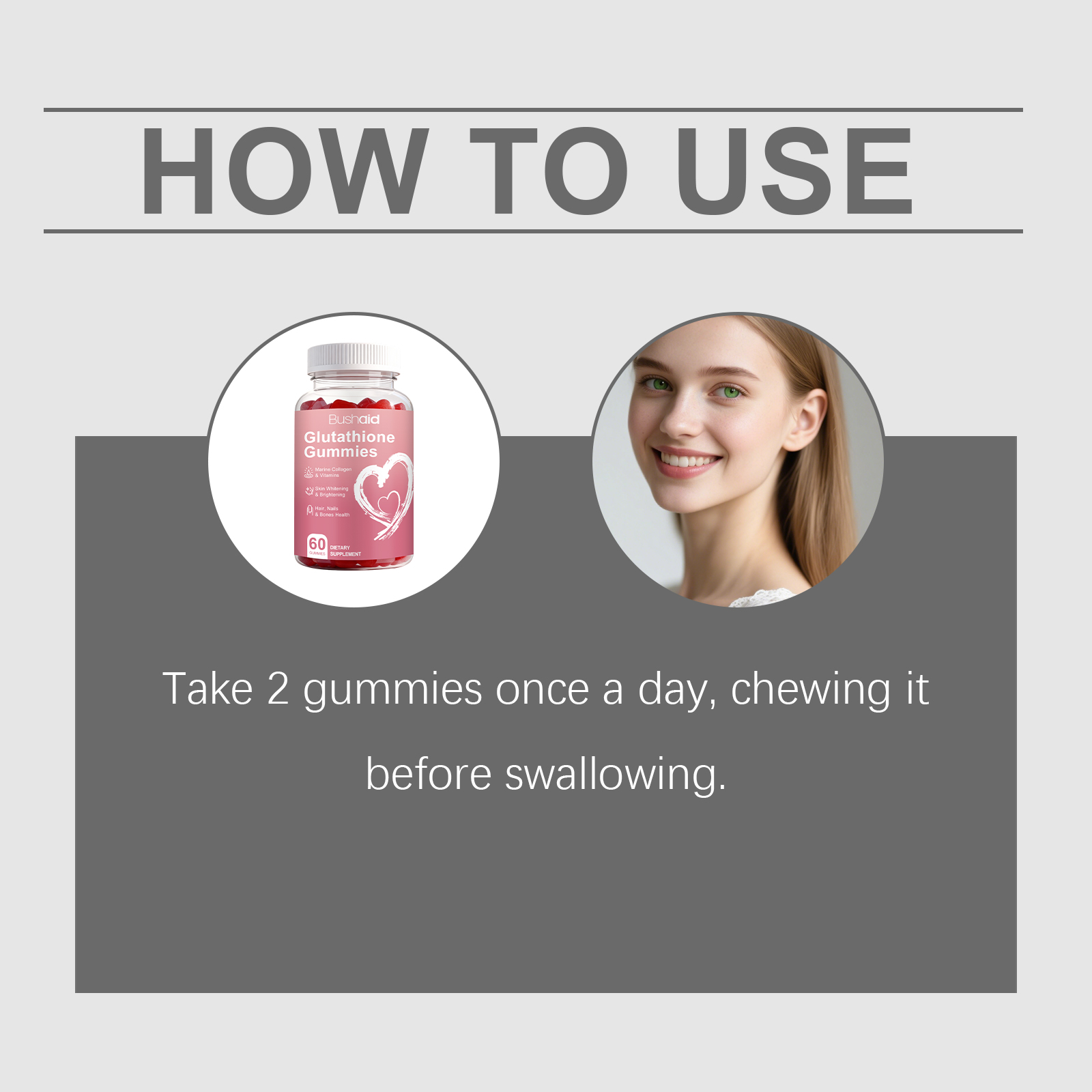 我们的谷胱甘肽软糖,由维生素C(抗坏血酸)、叶酸精心调配而成。专为帮助减少暗沉,增加光泽,改善皮肤弹性,减少松弛设计。使用方法极为便捷:每日服用 2 颗软糖,服用前先咀嚼,然后吞咽。并且它可以增强发丝和指甲,提升韧性。