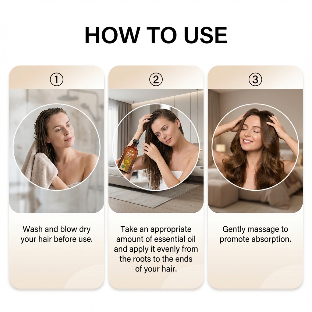 我们的头皮滋养护发油,由精氨酸、低芥酸菜子油精心调配而成。专为滋养干燥的头发设计。使用方法极为便捷:使用前,请洗发并吹干头发。取适量精油,均匀涂抹于发根至发梢。轻轻按摩,以促进吸收。并且可有效锁住水分。