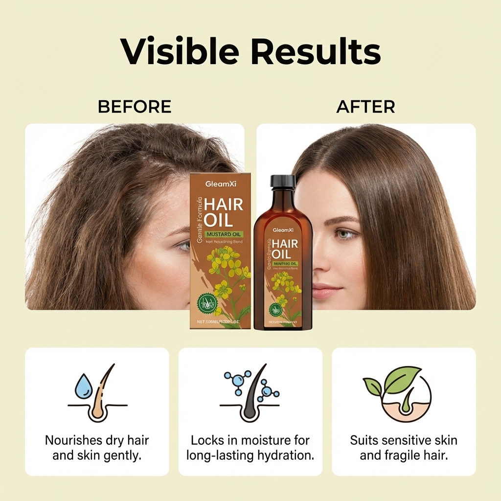 GleamXi Scalp Moisturizing Hair Oil Nourishes Hair, Keeps The Scalp Hydrated, And Makes The Ends Of Hair Dry, Rough, Smooth And Fluffy