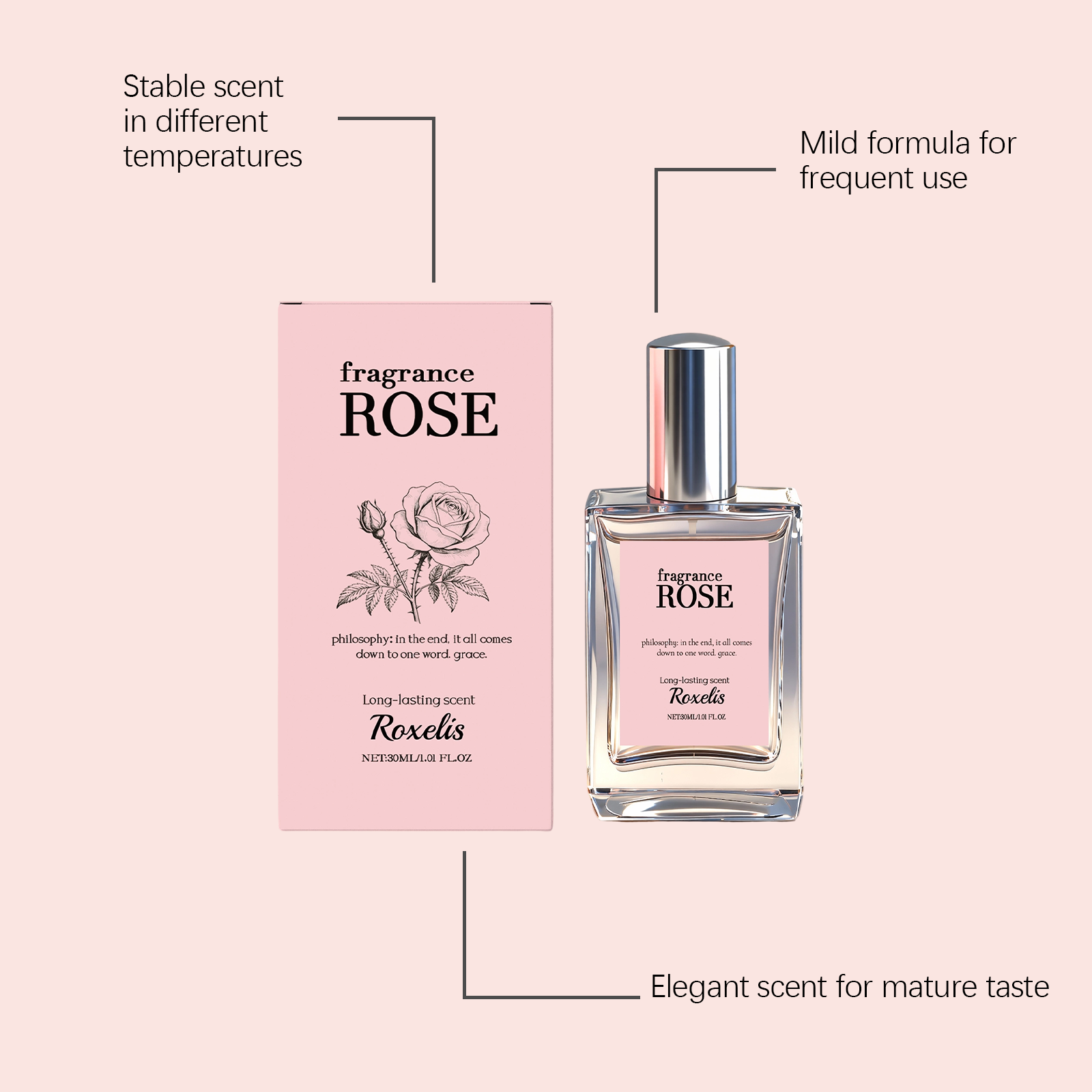 Roxelis The Rose Fresh Eau De Toilette Has A Unique Fragrance With A Natural Aftertaste, Elegant Charm And Allure. It Is Suitable For Daily Use On The Body And Behind The Ears