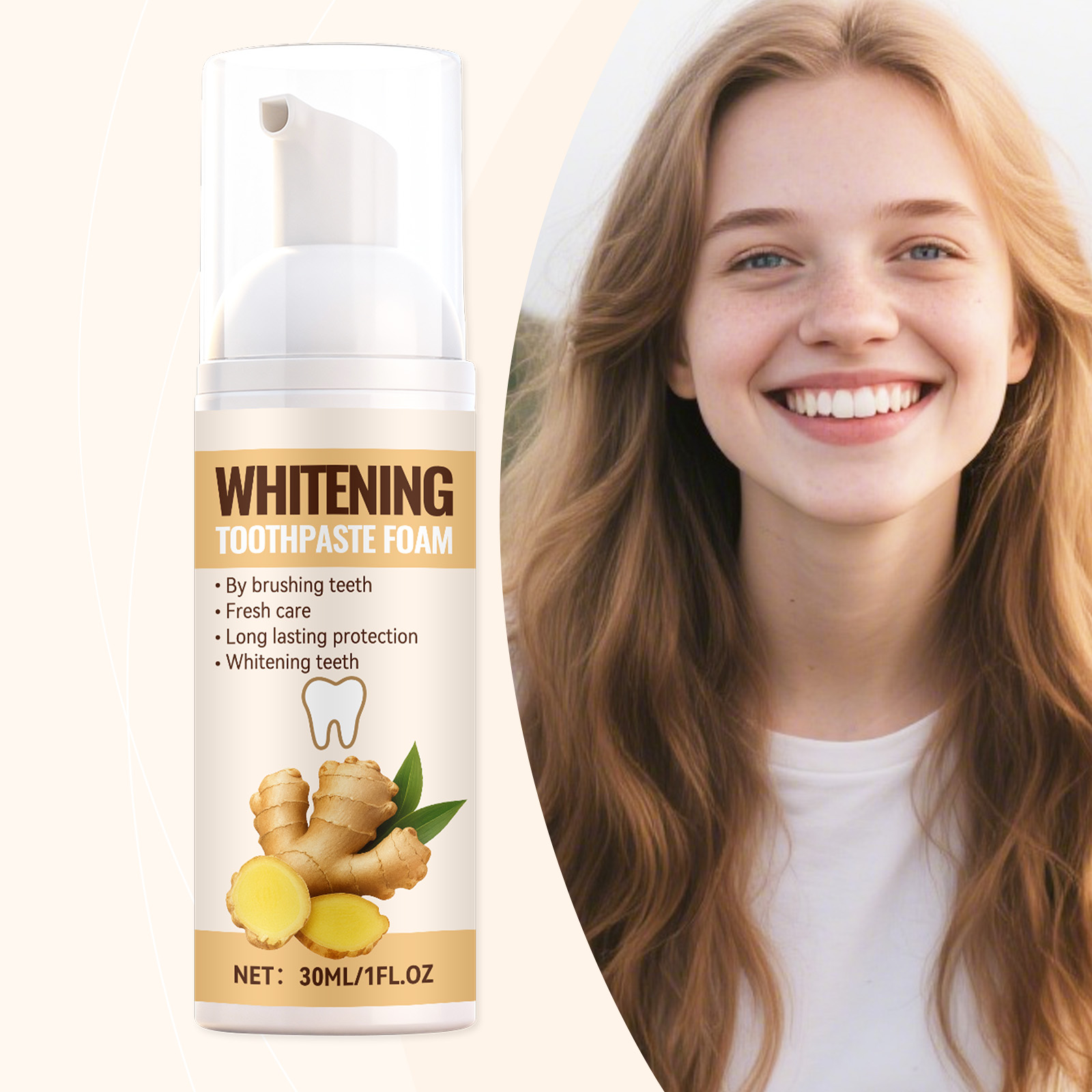 AMZ Ginger Tooth-Cleaning Mousse, Oral Cleansing, Odor Improvement, Gum Care, Plant Extract Freshening Breath, Soft Foam