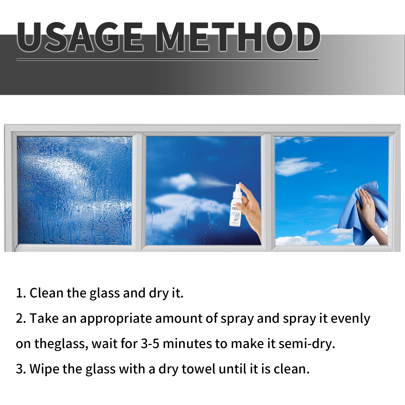 我们的反光单向镜面喷雾含有铝粉、丙烯酸树脂、紫外线吸收剂。它可以有效清洁玻璃,在玻璃表面形成一层看不见的、持久的保护层,更好保护个人的隐私性。它的使用方法很简单:把玻璃擦干净,晾干,取适量本品均匀地喷在玻璃上,等待3-5分钟使其半干,用干毛巾把玻璃擦干净即可。可以改善隐私,实现单向可视,让您偶尔看看外面发生了什么,同时防止别人窥探。