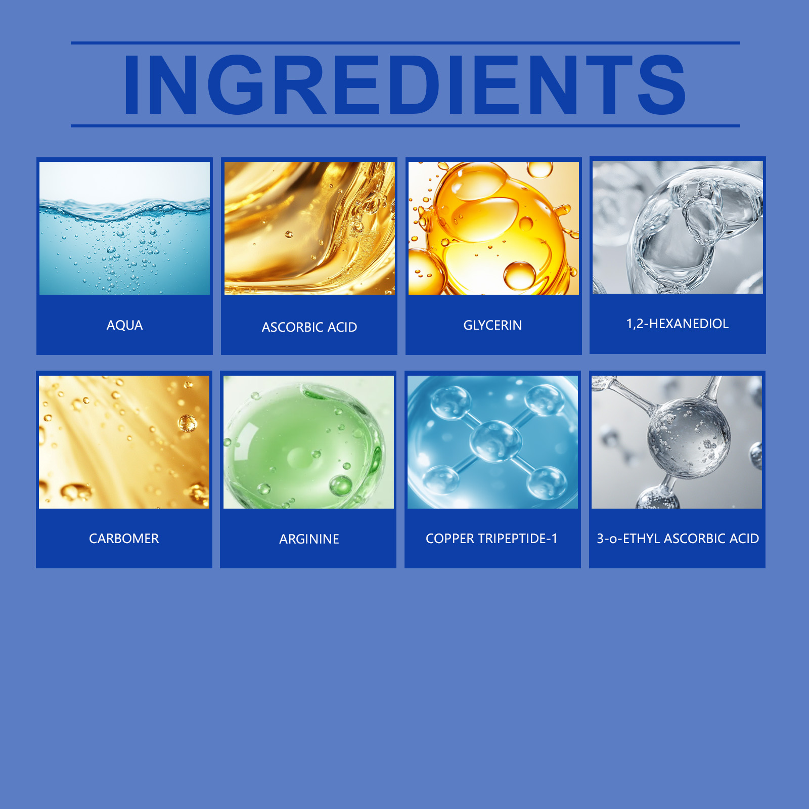 我们的面部精华液,由抗坏血酸(维生素 C)、甘油精心调配而成。专为深层滋润皮肤表面,保持日常柔软和舒适,并有助于改善皮肤的饱满度和弹性设计。使用方法极为便捷:1.清洁和爽肤后,取适量精华液于掌心。2.轻轻均匀地涂抹在脸部和颈部。3.轻柔按摩至精华液完全吸收。并且有助于增强皮肤弹性,使其看起来更饱满、更有弹性,适合日常护肤。