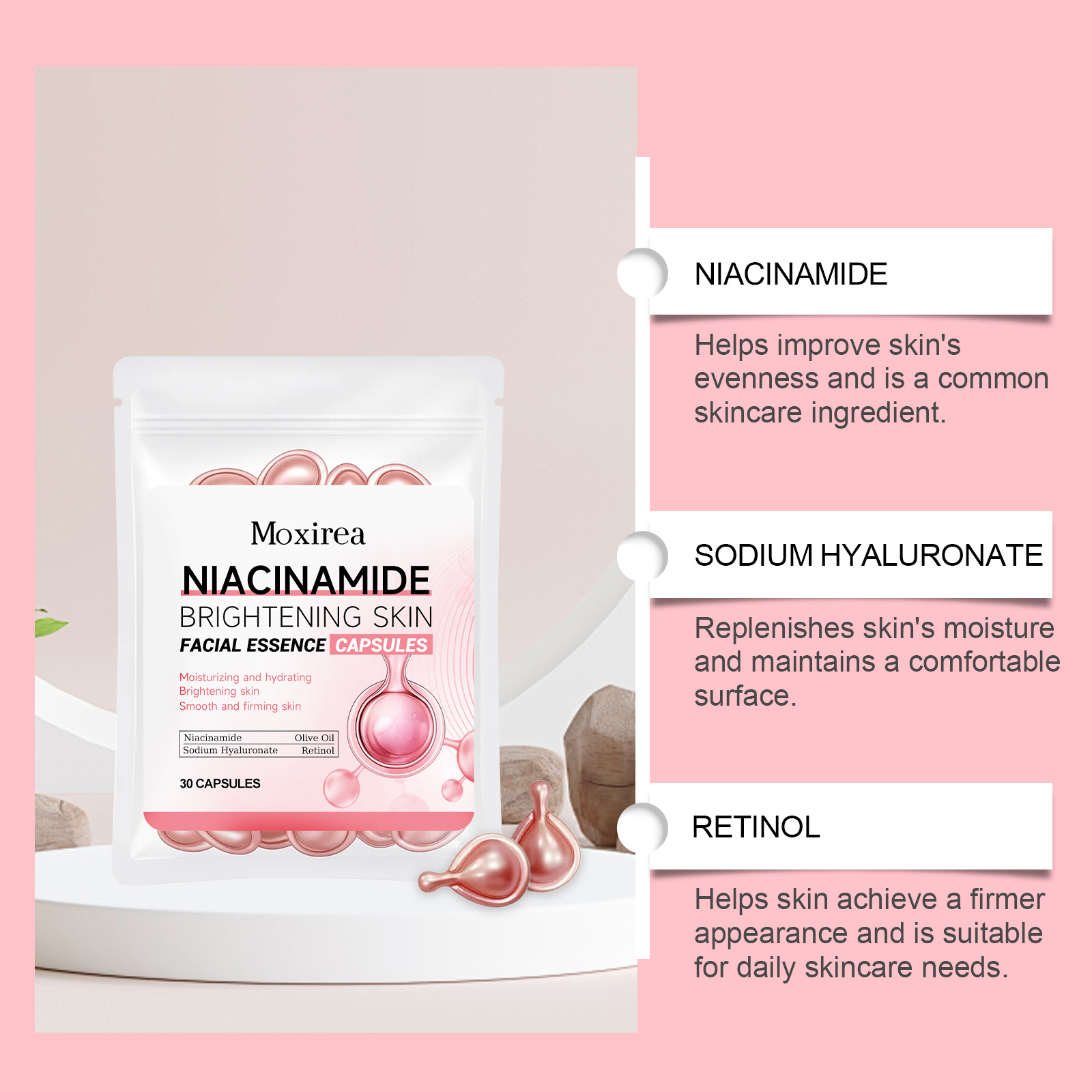 Moxirea Nicotinamide Facial Essence Capsules Gently Moisturize And Care For Facial Skin, Making It Soft And Smooth For Daily Skin Care