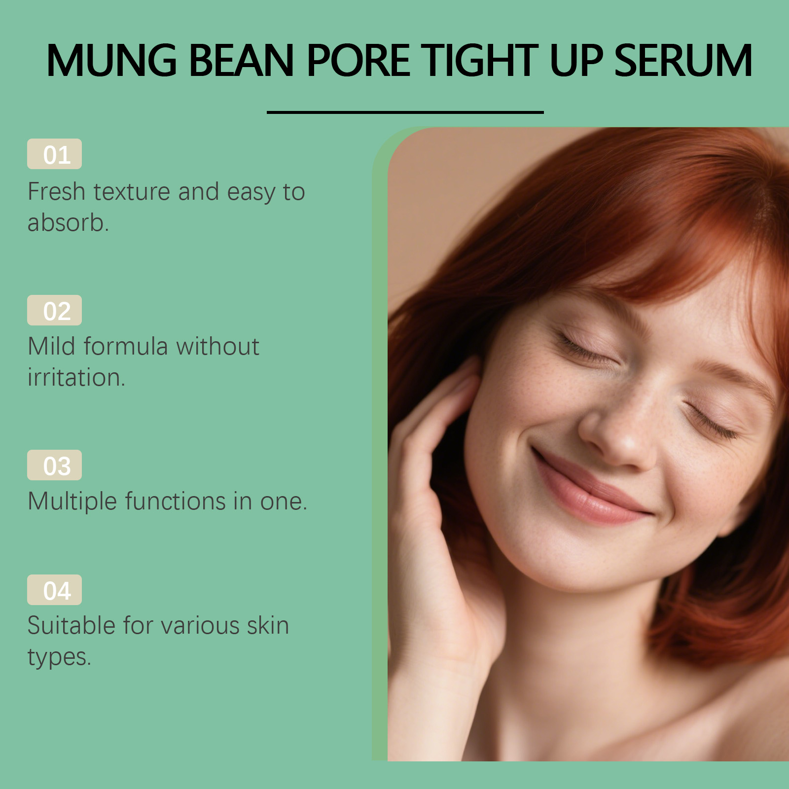 我们的绿豆毛孔护理精华液,由精氨酸、绿豆提取物精心调配而成。专为改善松弛肌肤设计。使用方法极为便捷:彻底清洁并擦干皮肤。取适量产品并均匀涂抹于面部。轻柔按摩,以达到最佳吸收效果。并且它可以持久锁水不黏腻。
