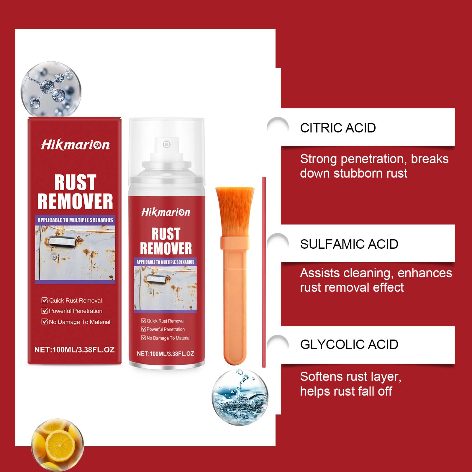 Hikmarion Rust Removal Set For Metal Rust Removal, Effective Cleaning And Decontamination, Refurbishment And Polishing, Vehicle Cleaning And Maintenance