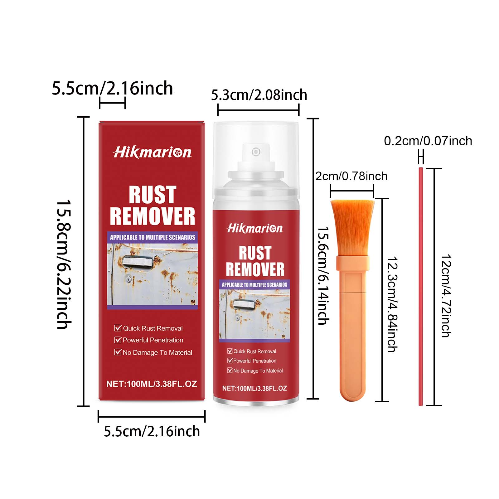 | 产品尺寸 | 产品:5.3*5.3*15.6cm,喷嘴:0.2*0.2*12cm,刷子:2*12.3*0.7cm |