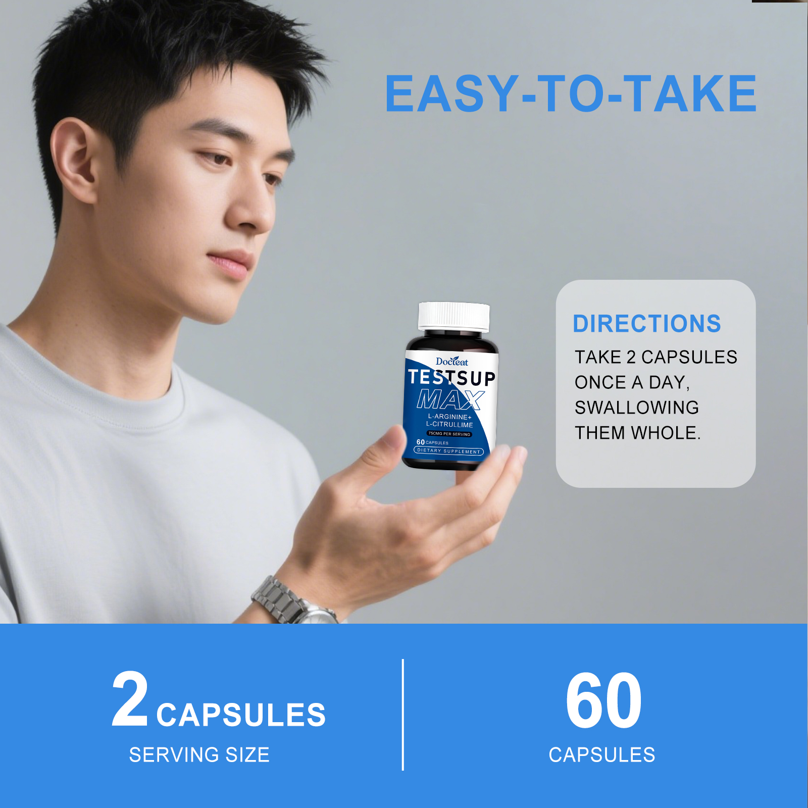 我们的L-精氨酸L-瓜氨酸胶囊,由L-精氨酸、L-瓜氨酸精心调配而成。专为稳定血管状况,增强血液循环,可能有助于提升日常活力并增强能量水平,支持肌肉功能,有助于提高力量输出设计。使用方法极为便捷:每天一次,一次2粒胶囊,吞服。并且它可以通过维持男性生理功能来支持健康的睾酮水平。