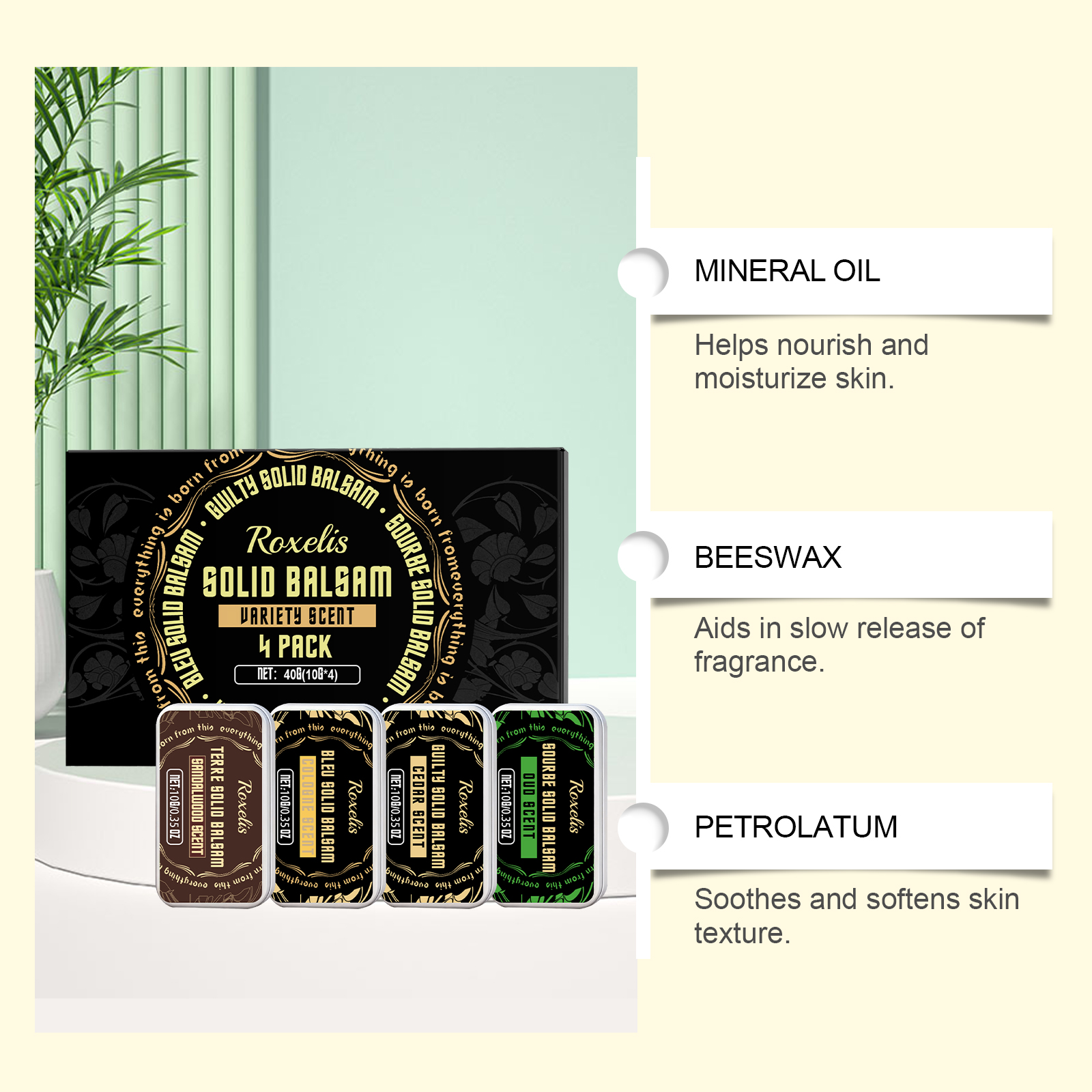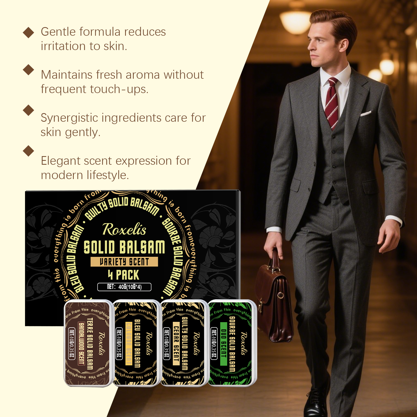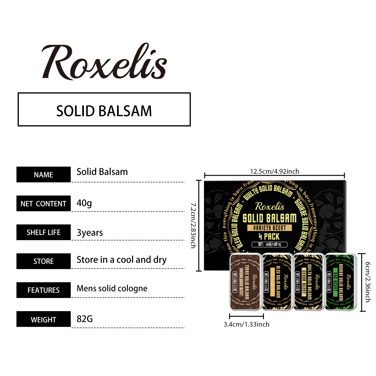 Roxelis Elegant Solid Balm Set Fresh And Delicate Fragrance, Natural And Lingering Scent, Convenient For Daily Use, Men's Balm Set