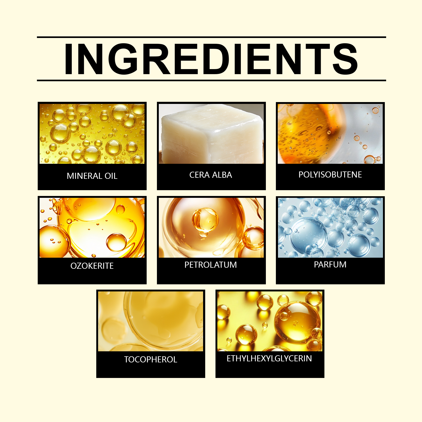 | 成分 | 矿油、白蜂蜡 |