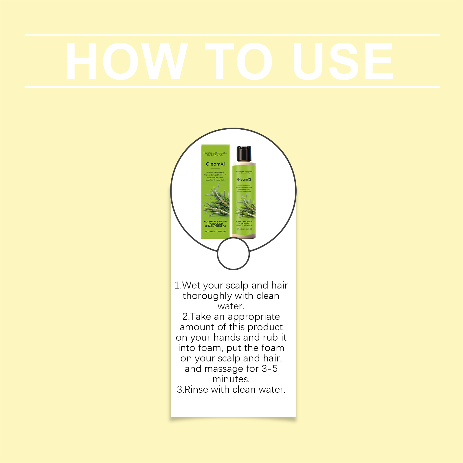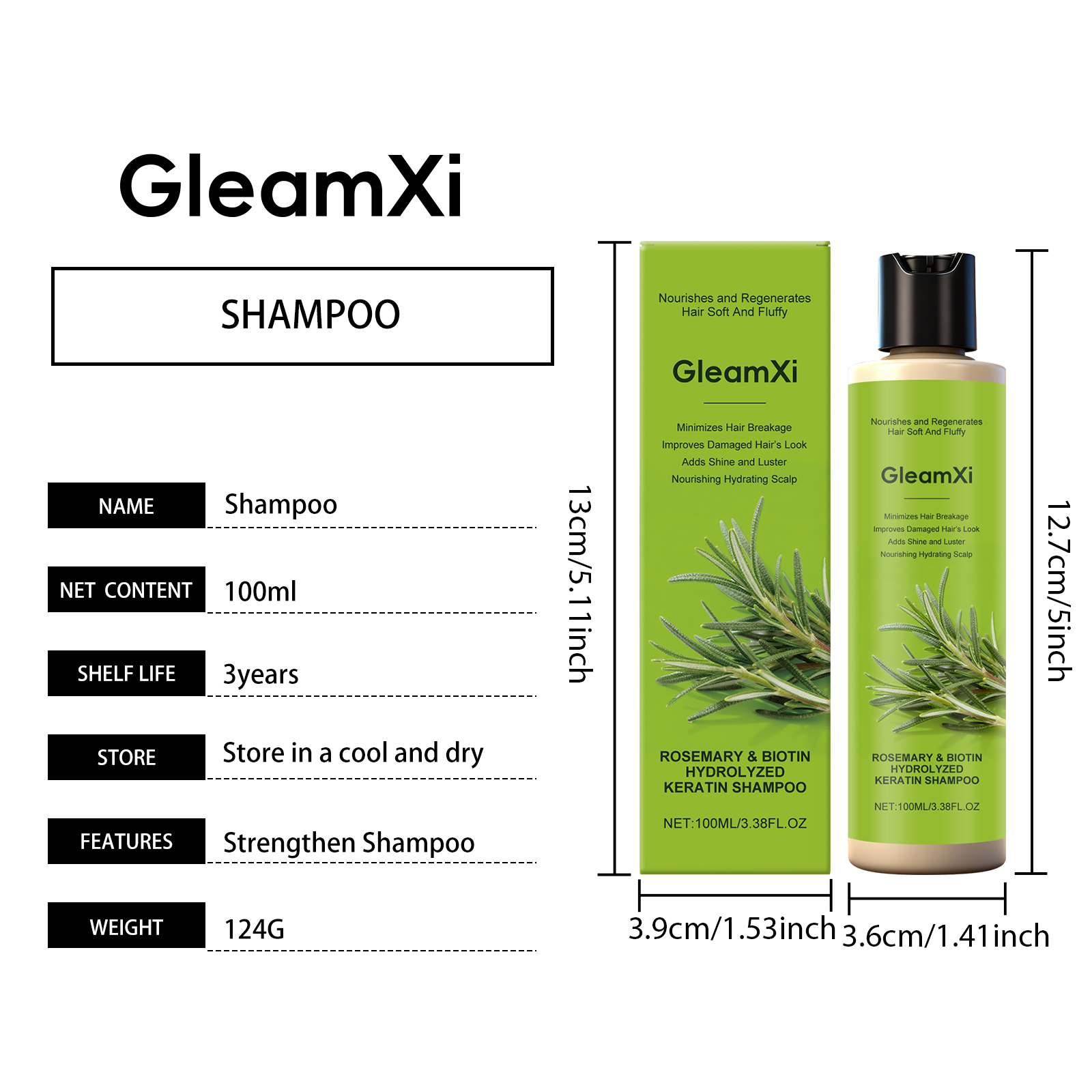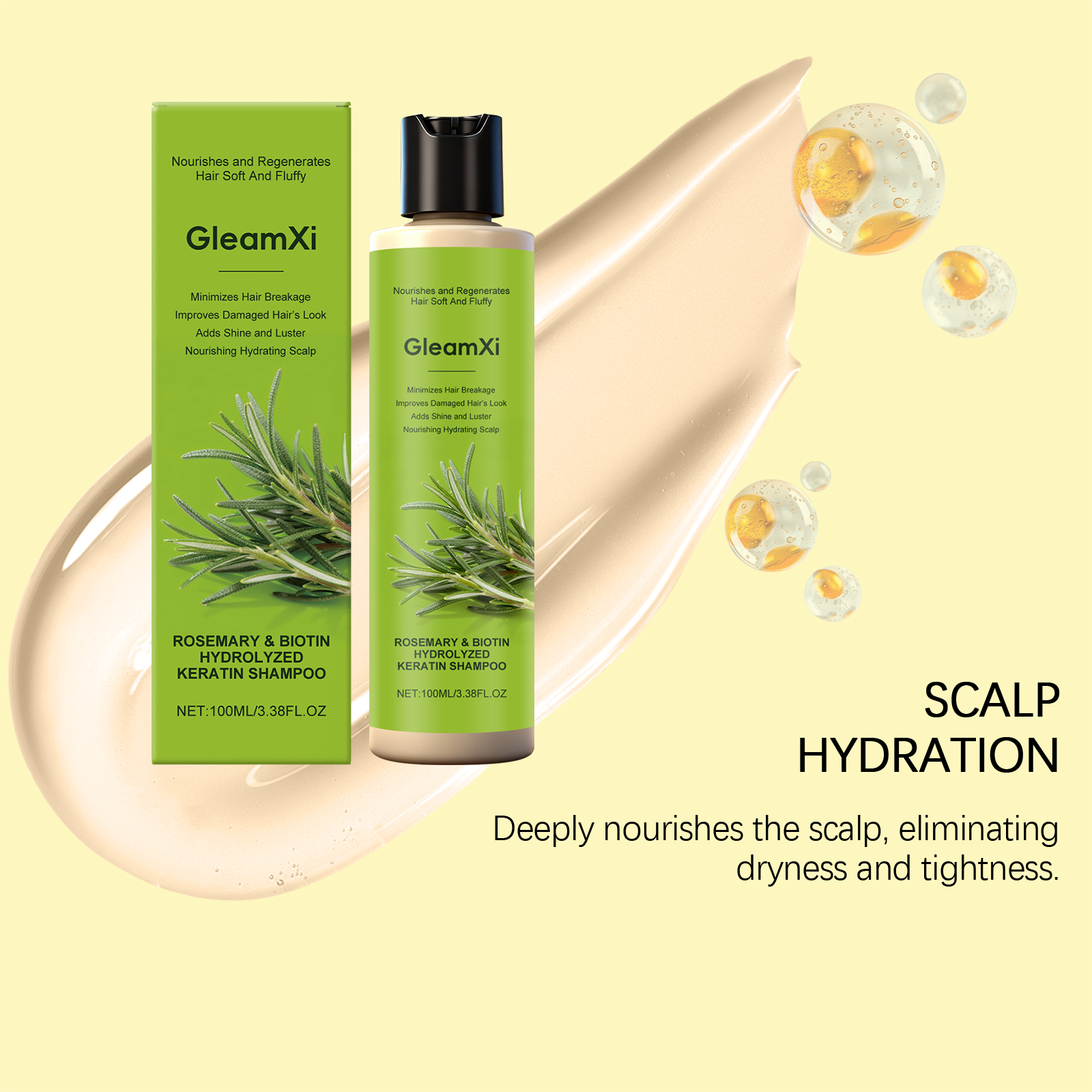 GleamXi Rosemary Hair Care Shampoo Cleanses The Scalp, Gives It Luster, Moisturizes And Softens The Hair Strands